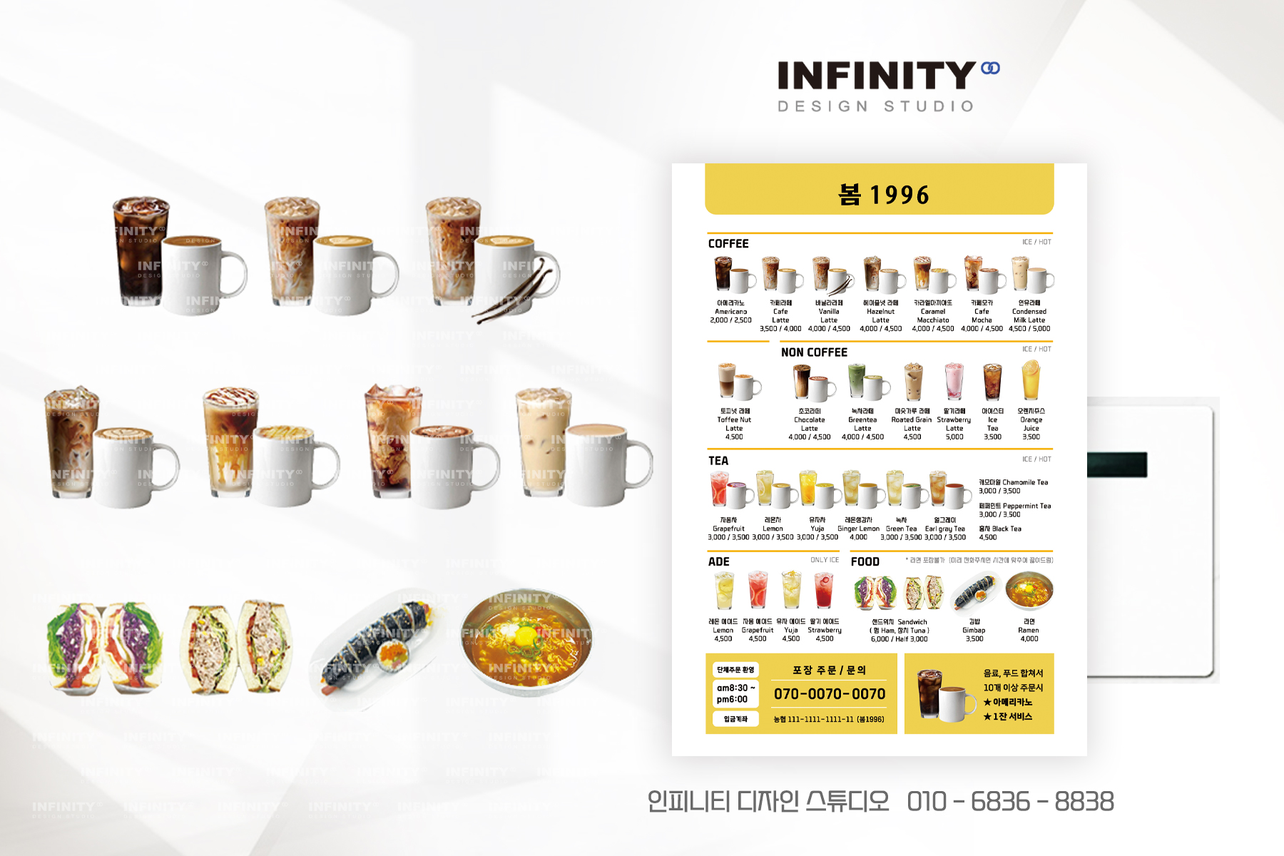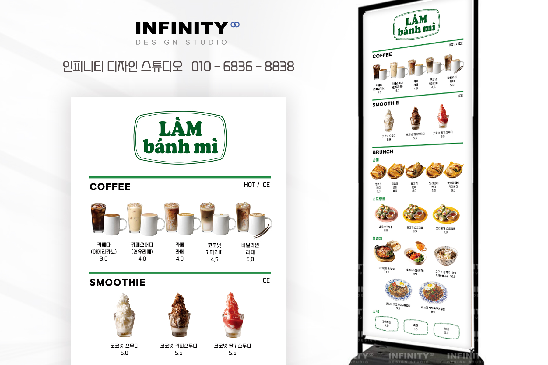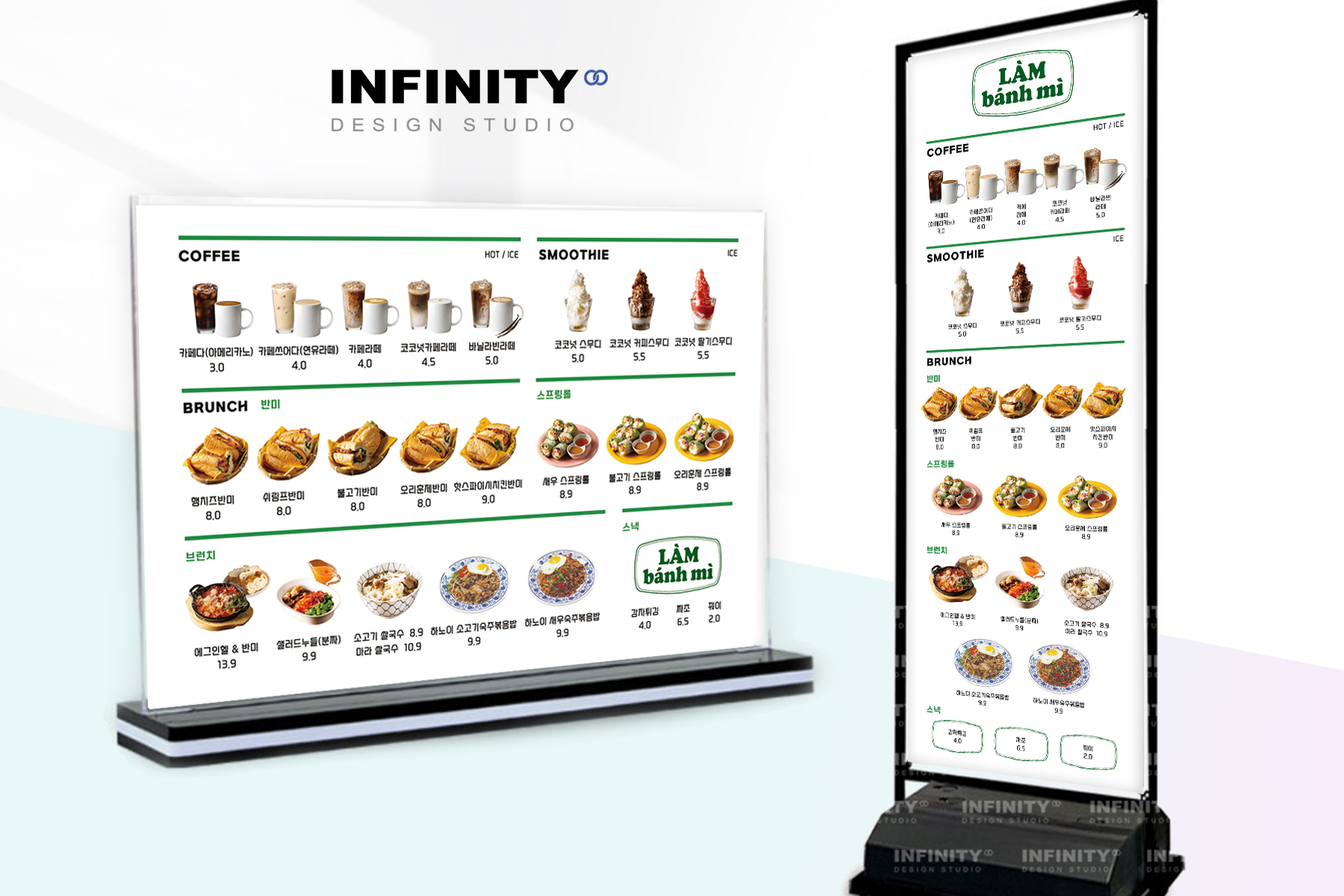 안녕하세요, 디자인, 제작 전문인피니티 디자인 스튜디오 입니다. 오늘은 카페 오픈 DID 메뉴판 디자인,키오스크 메뉴사진 세트 제작 소식포스팅 준비했습니다 :) 배너, 메뉴판, 사진세트, 광