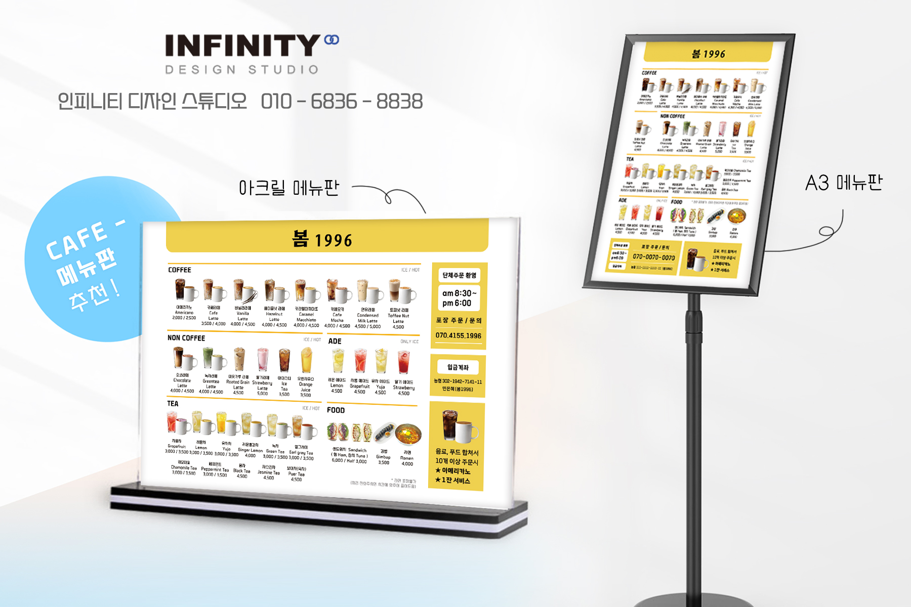 카페 메뉴판 + 아크릴 거치대 세트