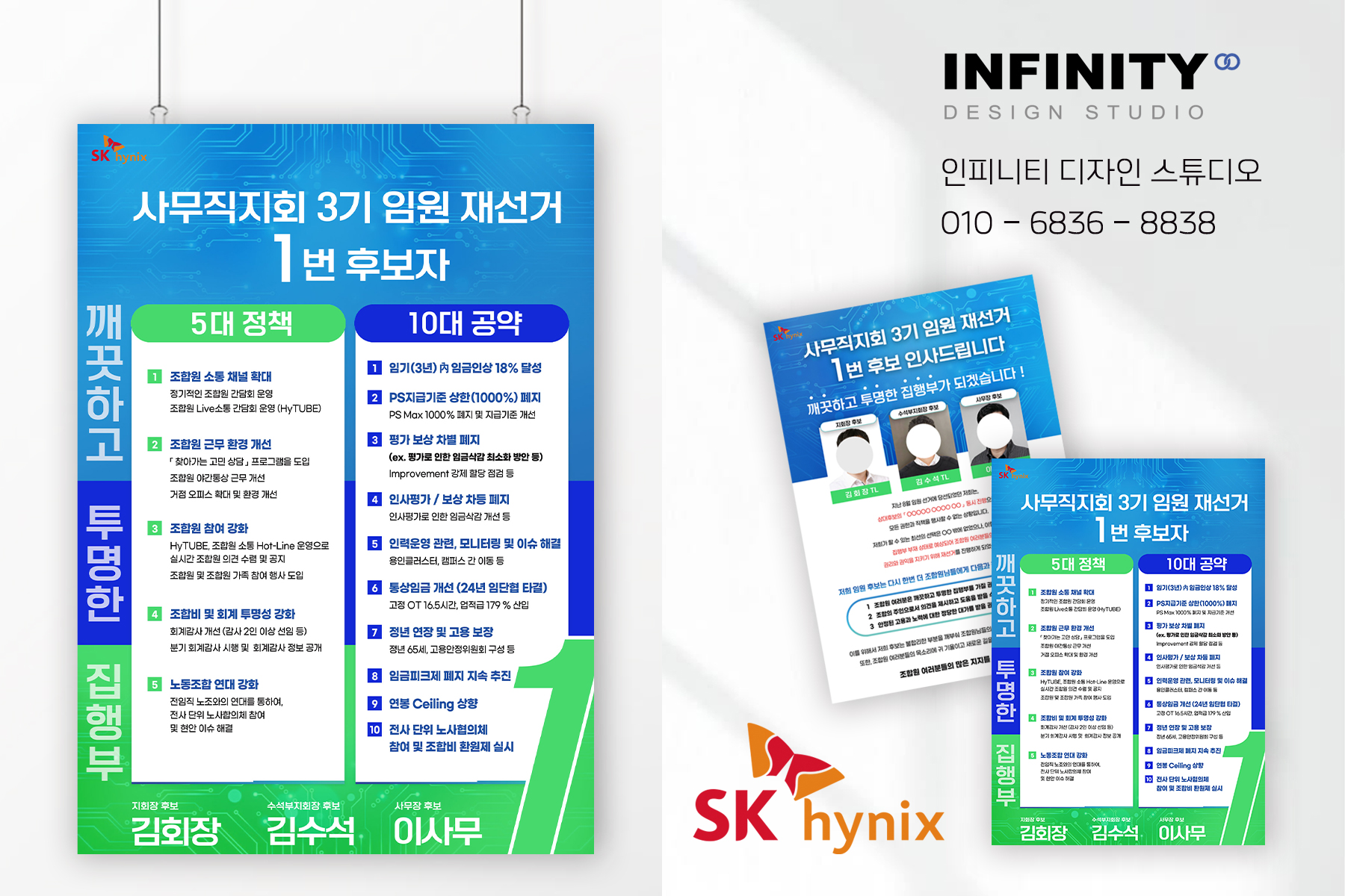 안녕하세요, 디자인, 제작 전문인피니티 디자인 스튜디오 입니다 :) 기업 임원 선거 포스터 진행 영상 먼저보실까요?! SK 하이닉스 임원 선거를 준비하며선거포스터 디자인을 의뢰해주셨답