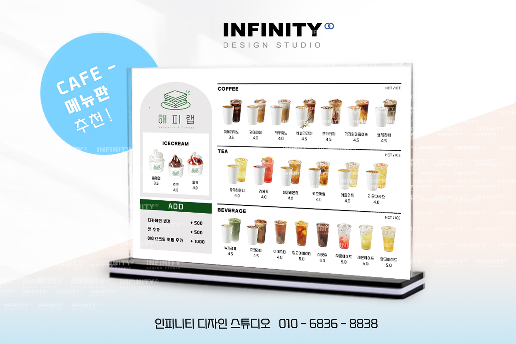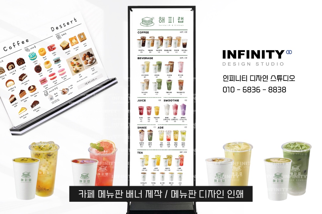 안녕하세요, 디자인, 제작 전문인피니티 디자인 스튜디오 입니다. 오늘은 카페 오픈 DID 메뉴판 디자인,키오스크 메뉴사진 세트 제작 소식포스팅 준비했습니다 :) 배너, 메뉴판, 사진세트, 광