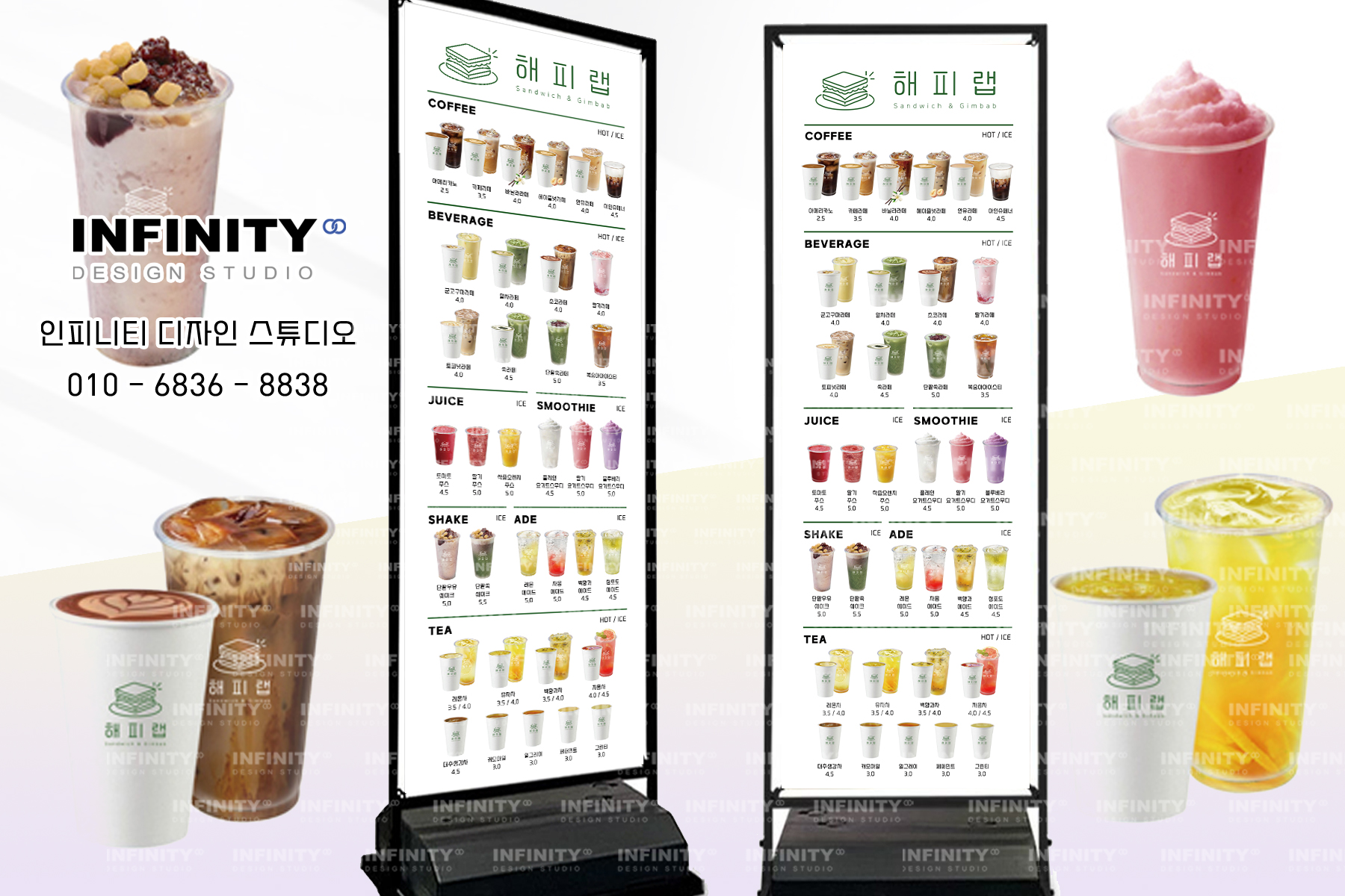 안녕하세요, 디자인, 제작 전문인피니티 디자인 스튜디오 입니다.오늘은 샌드위치 배너, 카페 메뉴판 제작소식 포스팅 드립니다 :) 영상으로 먼저 보실까요?! 카페 메뉴판 + 아크릴 거치대
