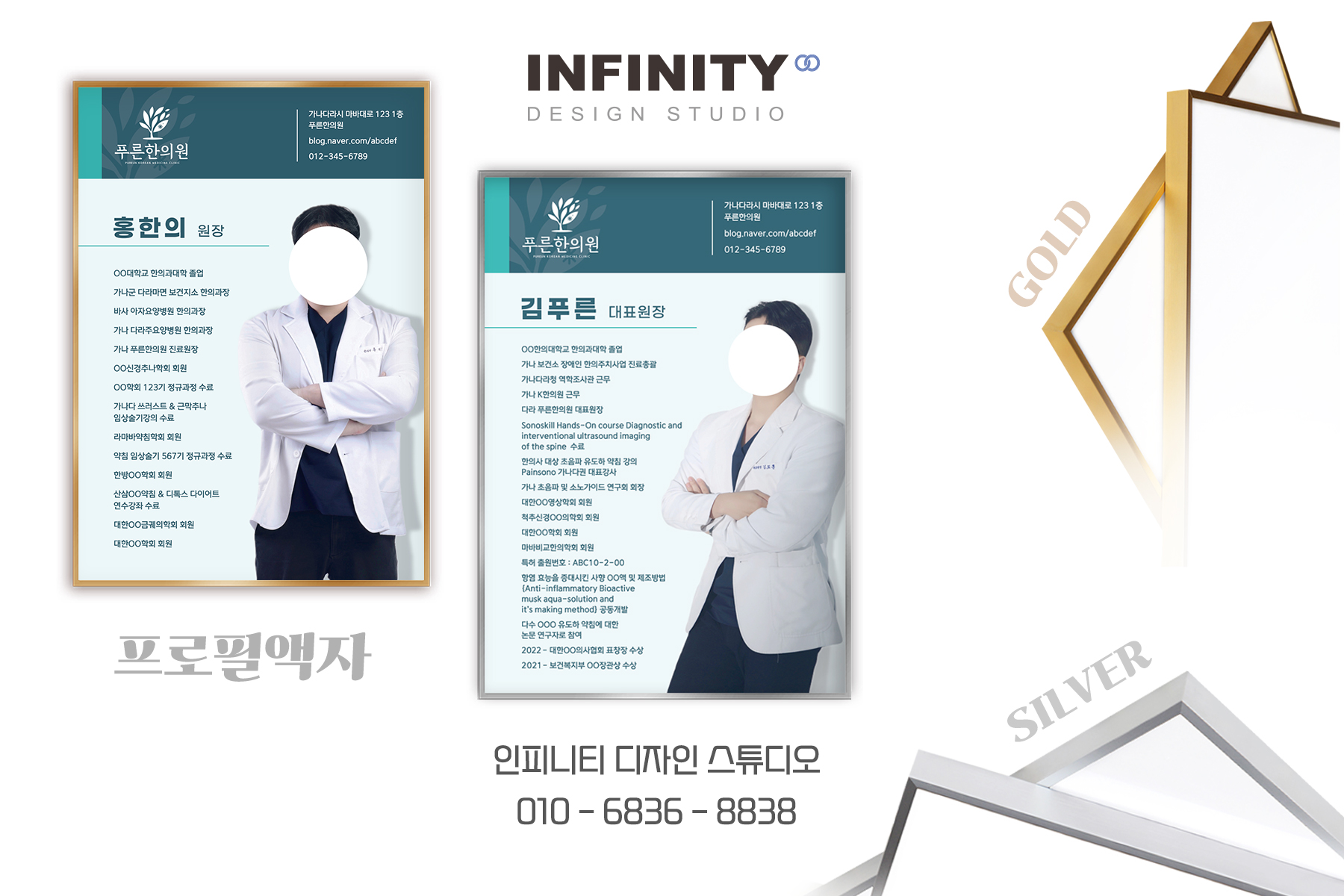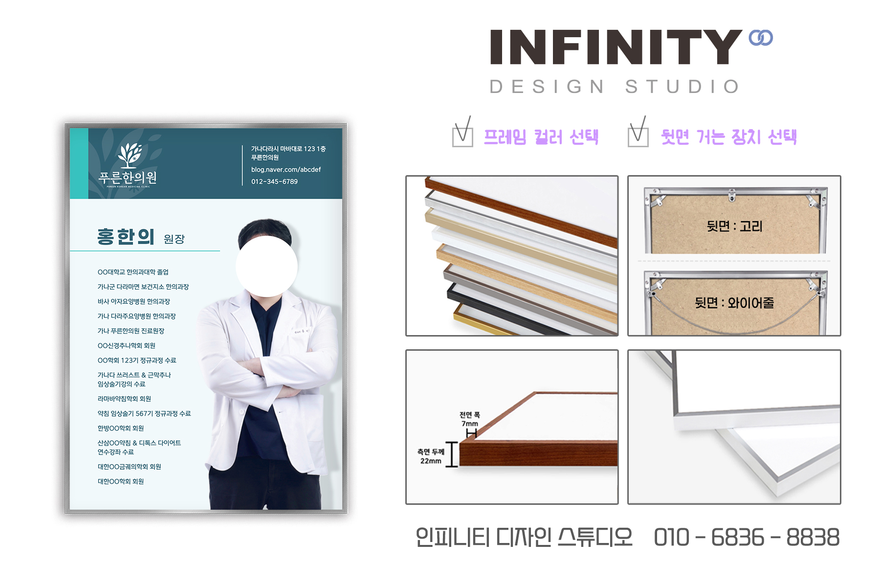 안녕하세요, 디자인, 제작 전문인피니티 디자인 스튜디오 입니다. 오늘은 한의원에서 의뢰해주신 액자 제작소식 포스팅 준비했어요 ! 의사, 한의사, 원장님 프로필 액자 제작은필수템으로 인