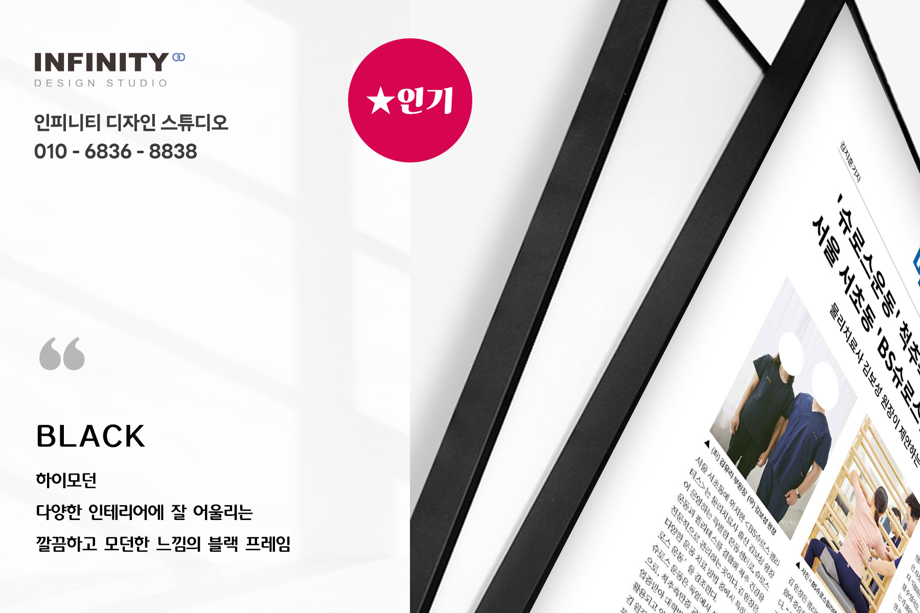 잡지기사 액자, 홍보 액자, 제품 홍보 액자 등