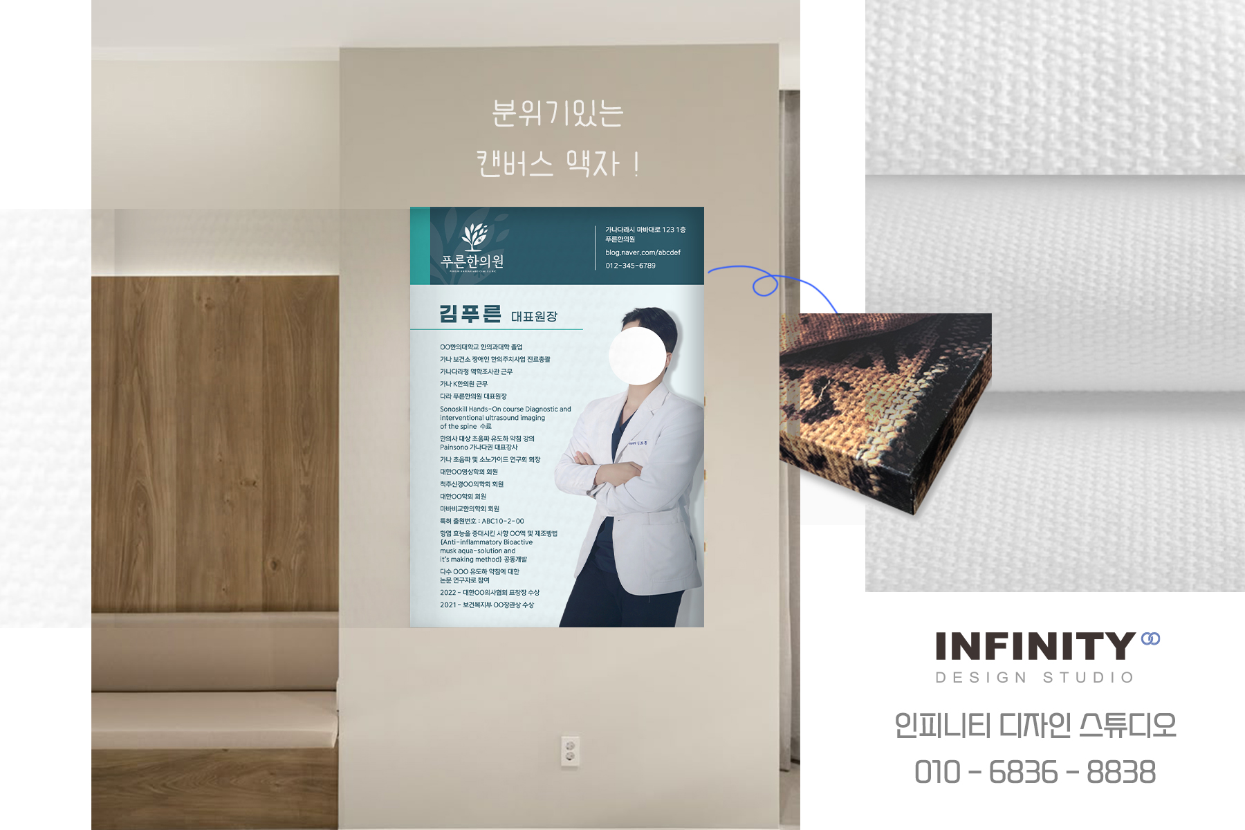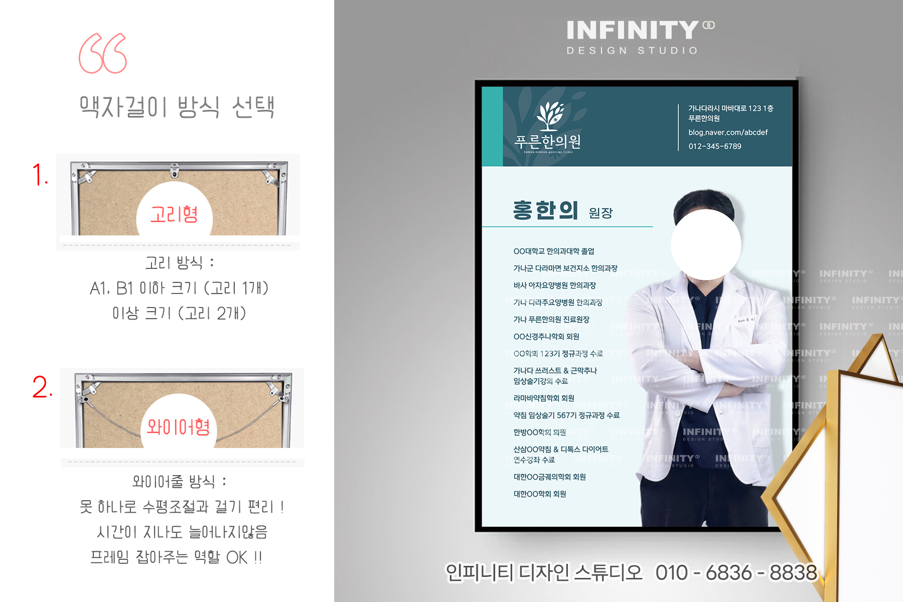 한의원 액자 제작, 원장님 홍보물 디자인+인쇄+제작