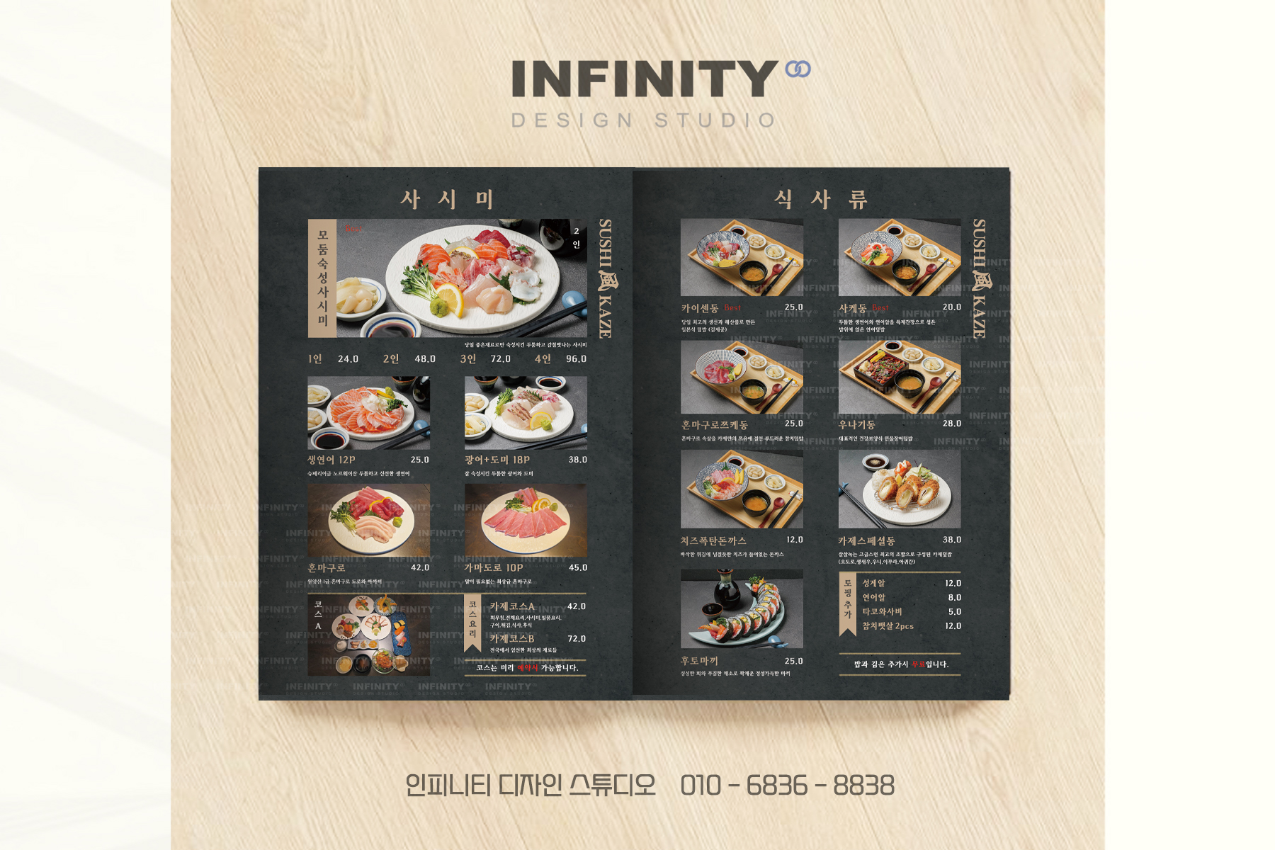 안녕하세요, 디자인, 제작 전문인피니티 디자인 스튜디오 입니다. 오늘은 음식점 메뉴판 제작 소식 포스팅준비했으니 함께 보실까요?! 한식, 일식, 중식, 양식, 동남아식 등다양한 업종에 맞