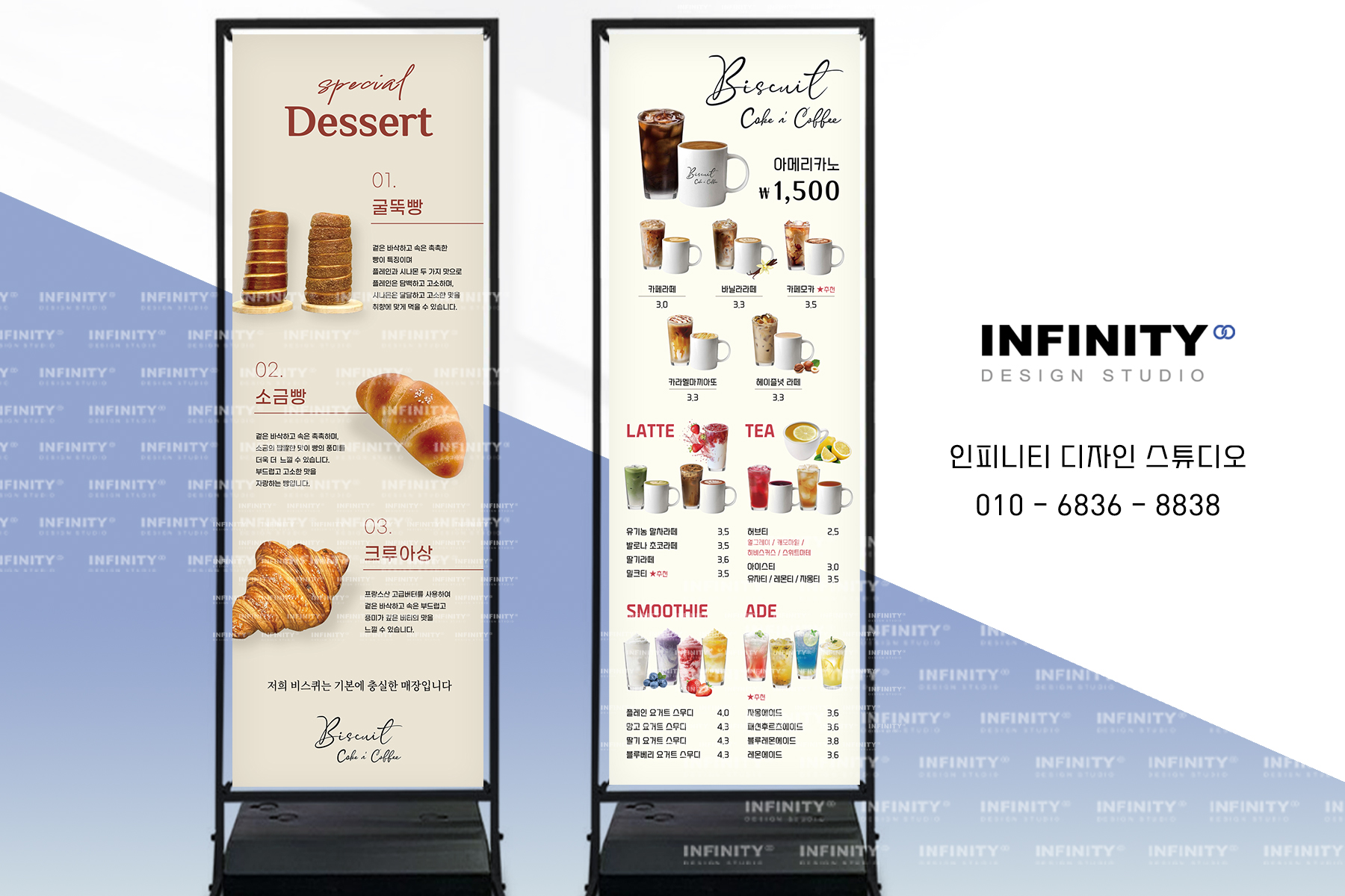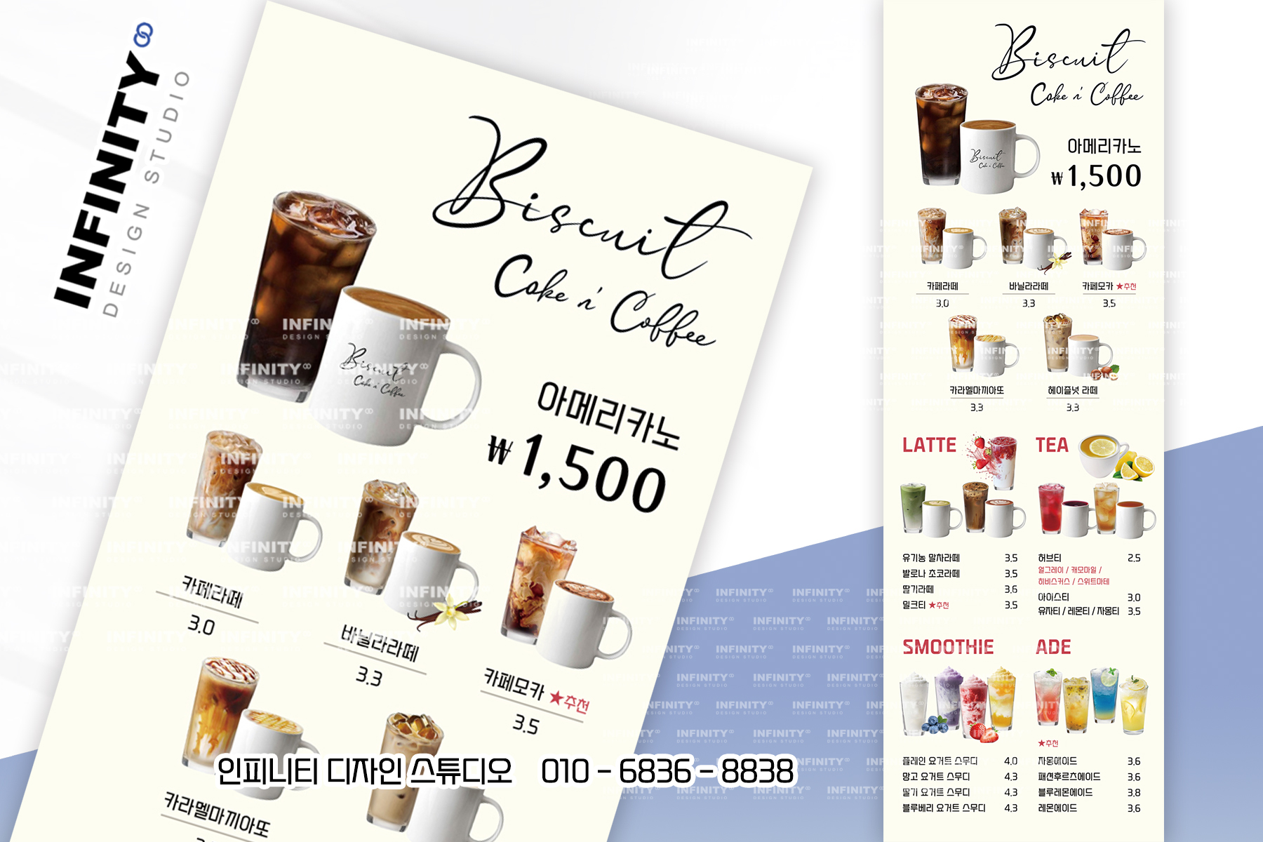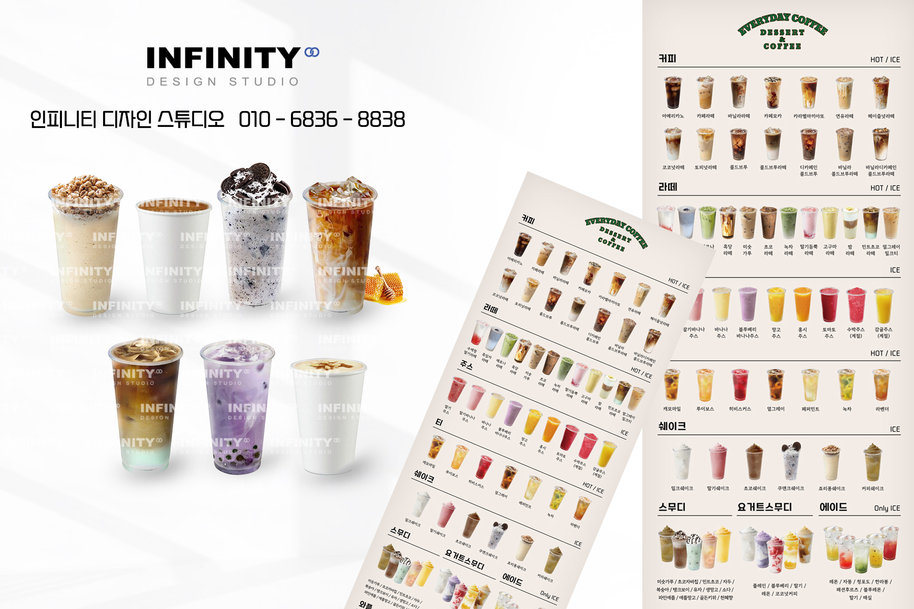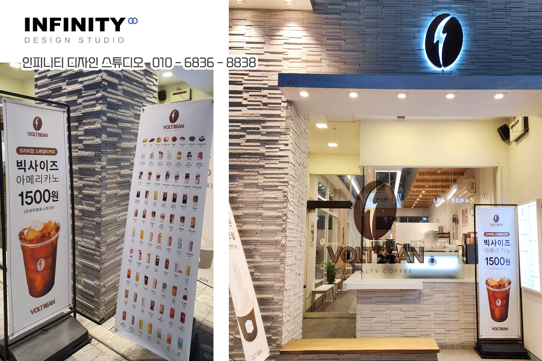 카페 오픈 준비, 카페 키오스크 사진촬영 제작, 배너 제작, DID 디자인, 카페 메뉴판 디자인, 인쇄