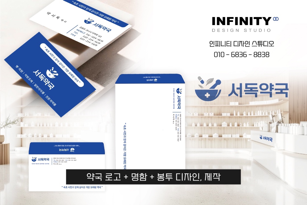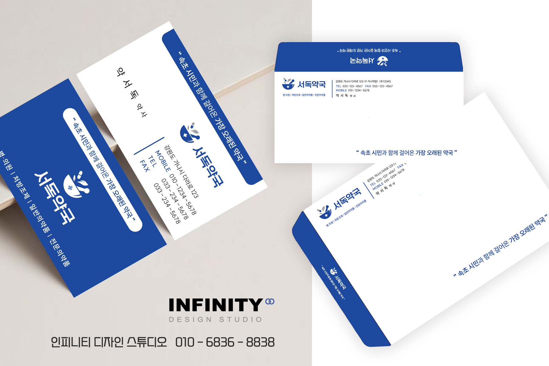 약국에 필요한 명함과 봉투를 세트로 제작하고