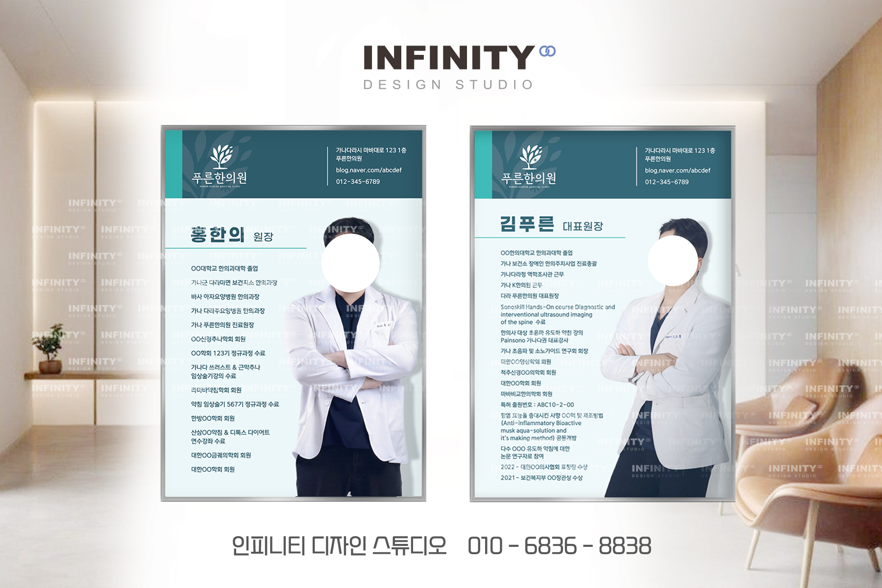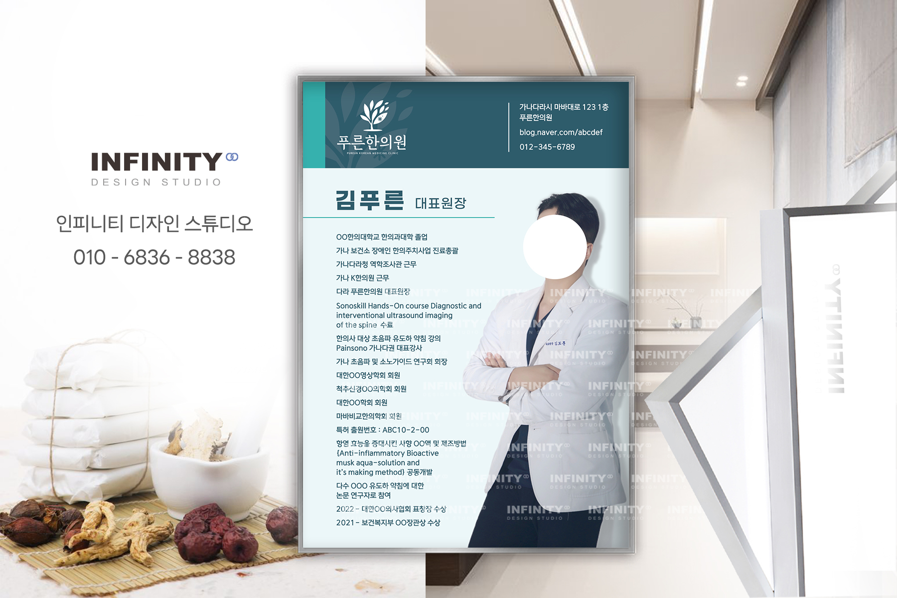 안녕하세요, 디자인, 제작 전문인피니티 디자인 스튜디오 입니다.오늘은 프로필 액자 제작, 한의원 원장님 프로필디자인, 맞춤 액자 진행 소식 드립니다 :) 한의원 오픈 준비 / 리뉴얼 진행으로