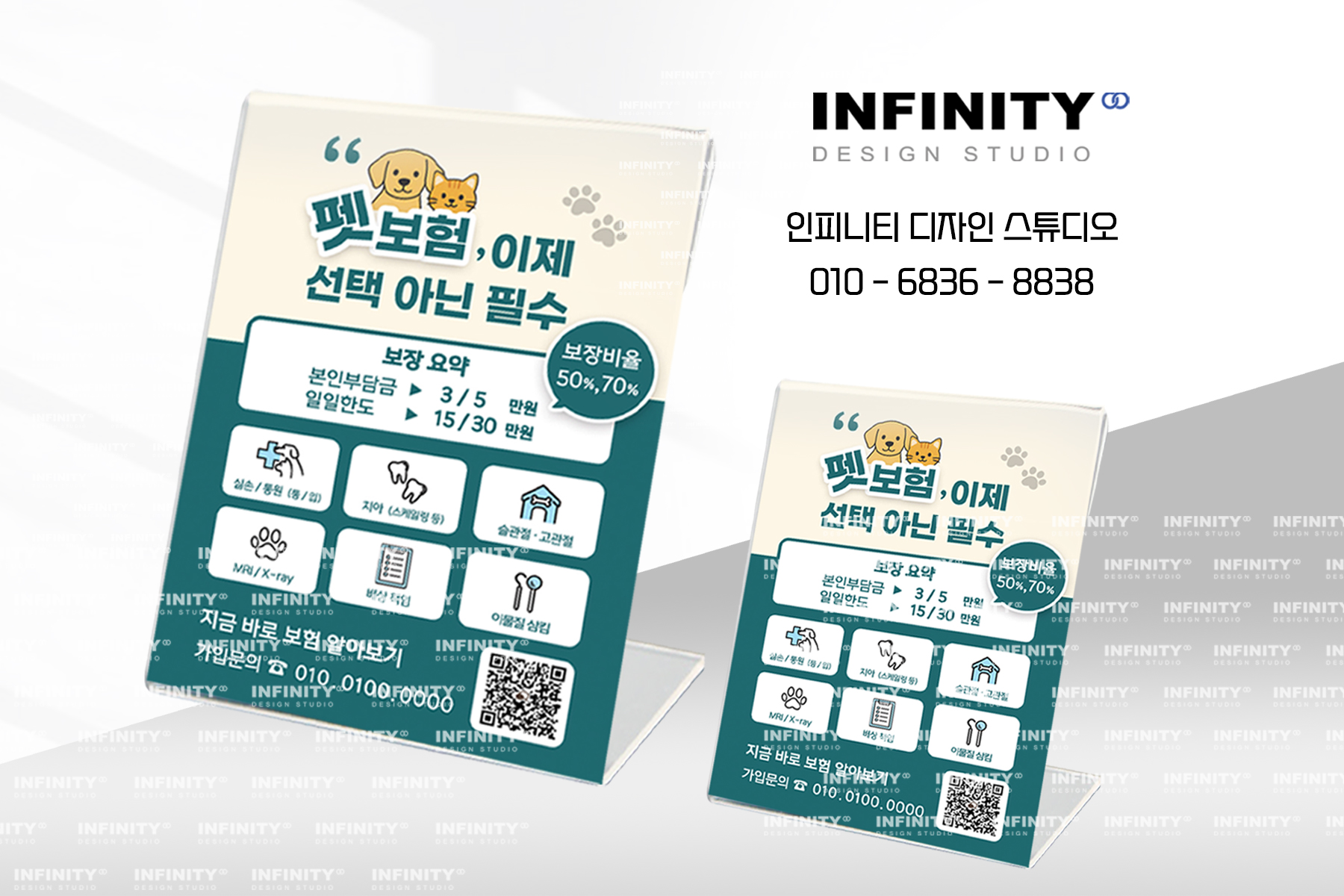 펫보험을 홍보하는 배너와 아크릴 홍보물로