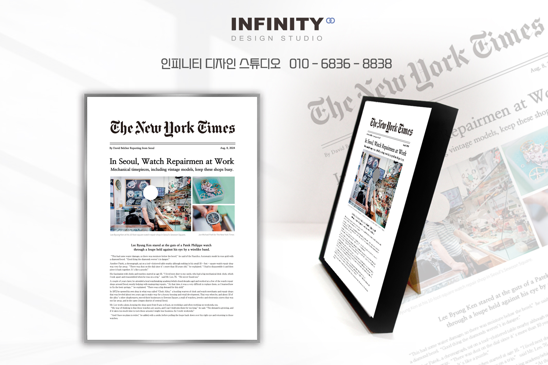 신문기사 액자 디자인 제작을 진행하고 있어요.