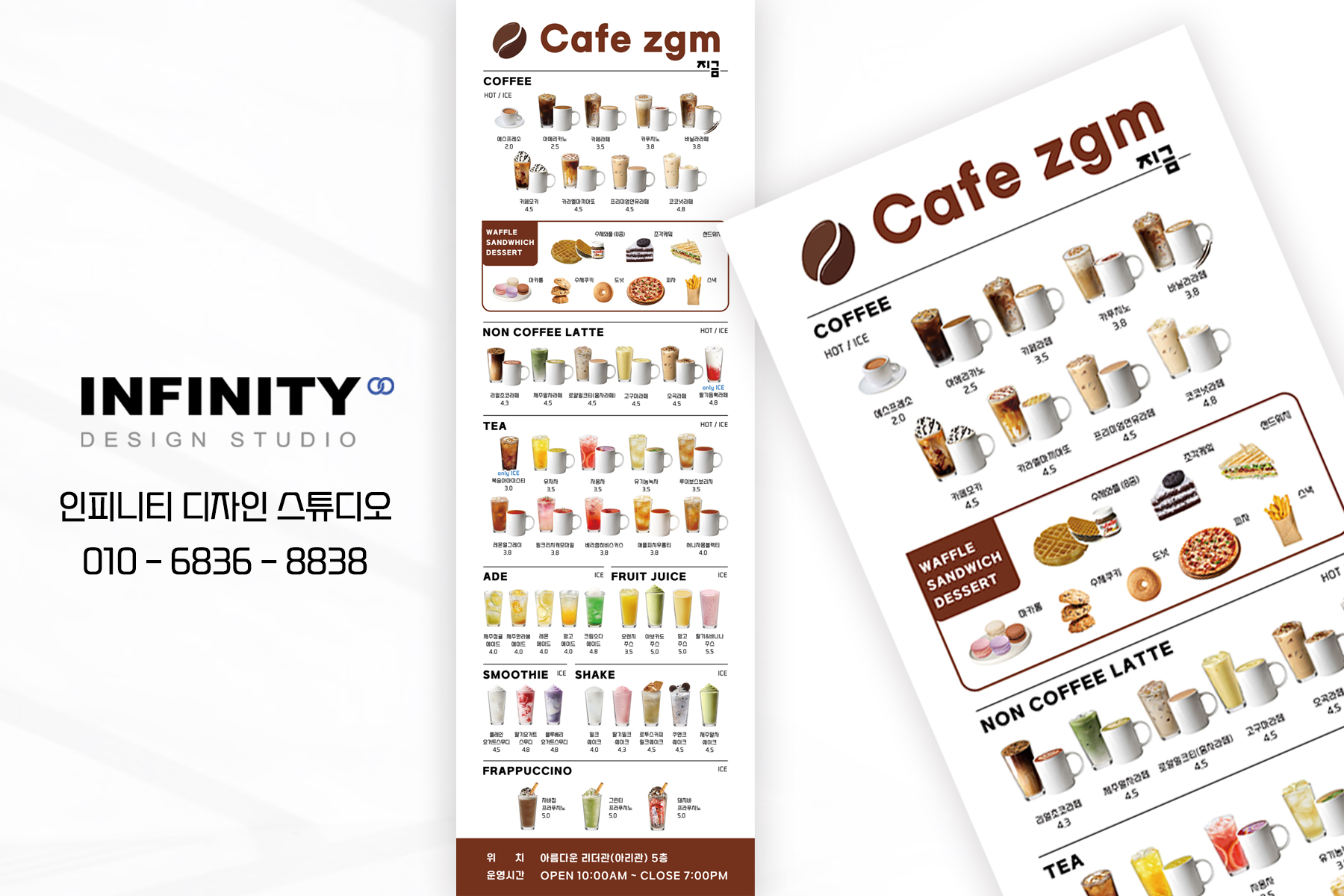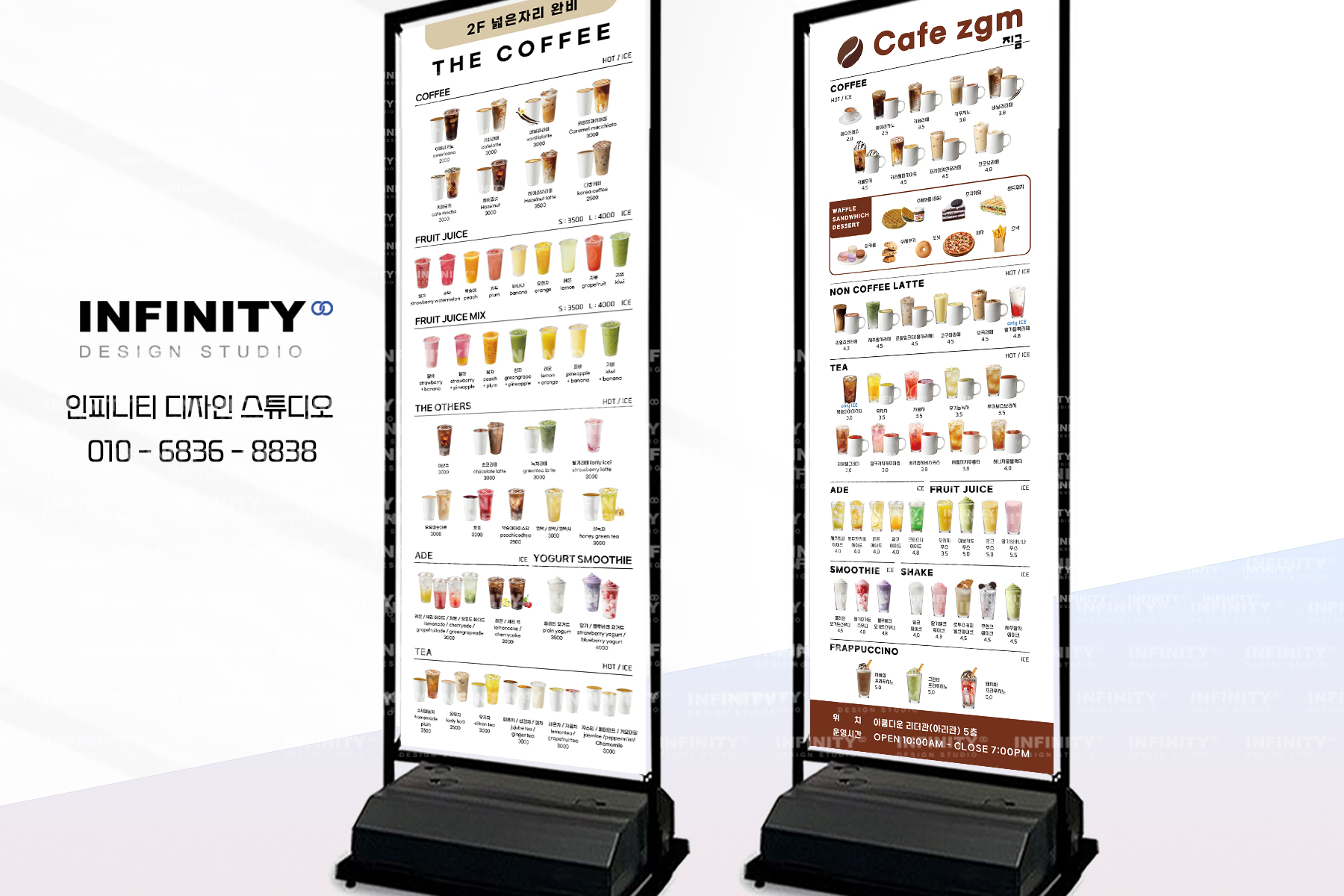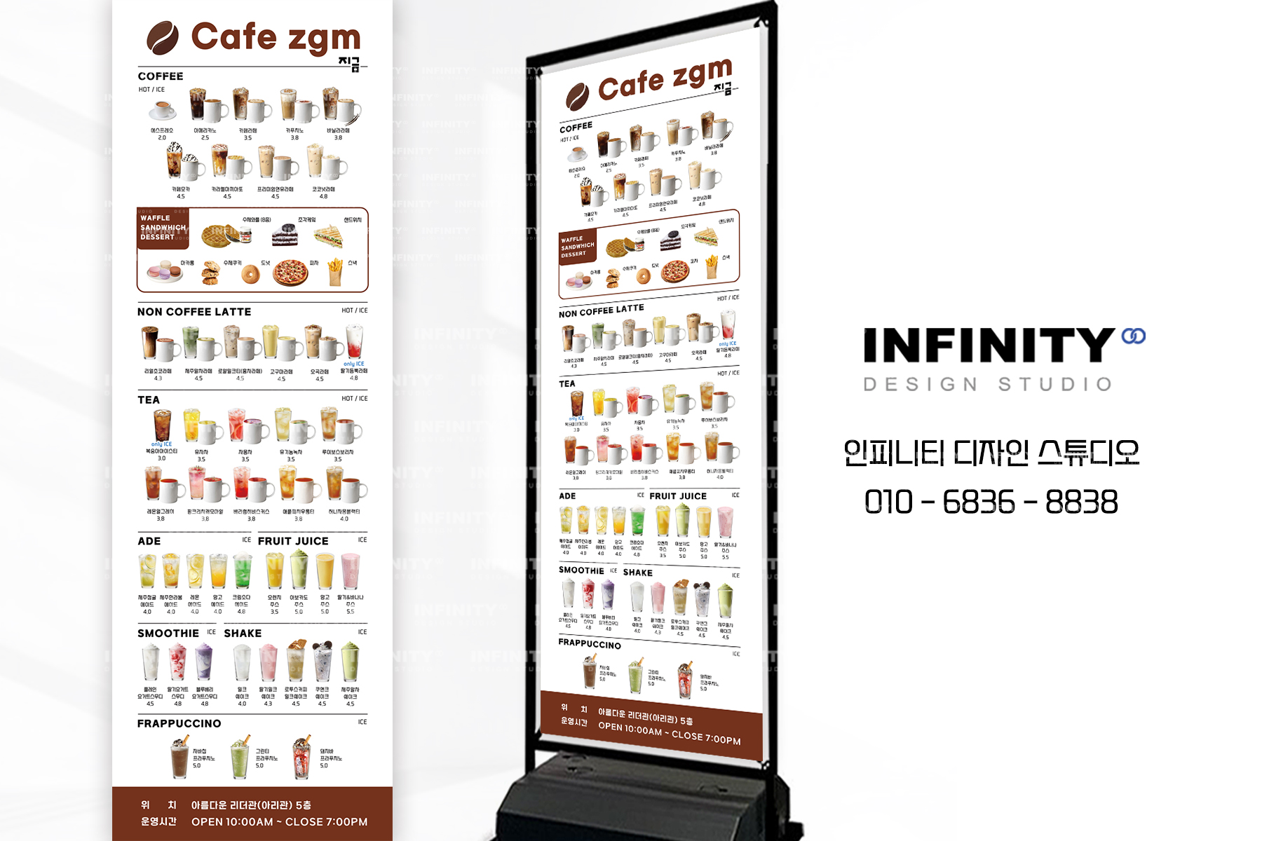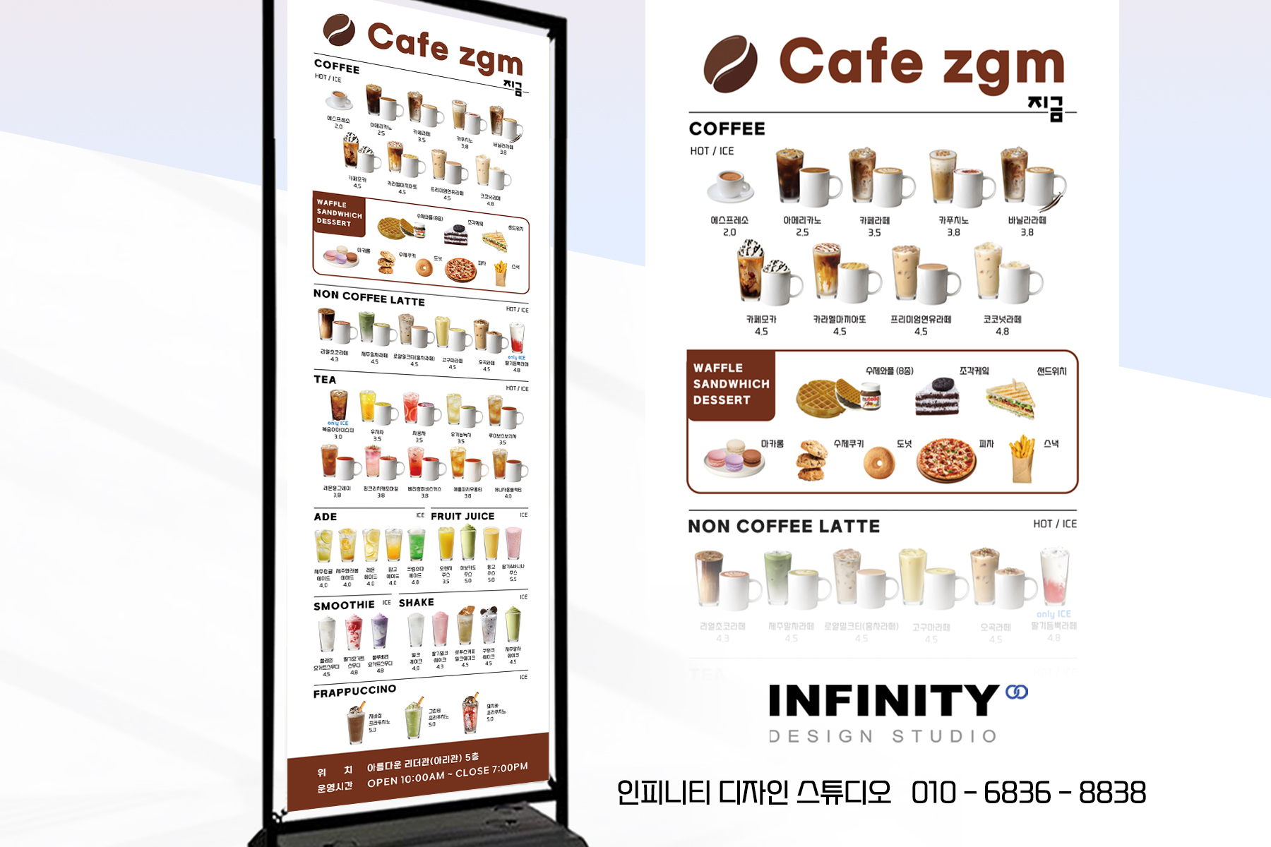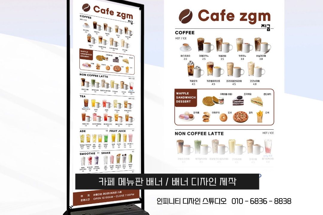 안녕하세요, 디자인, 제작 전문인피니티 디자인 스튜디오 입니다!오늘은 최근 진행한 카페 자석메뉴판디자인 제작 후기를 소개해드리려고 합니다. 인피니티 디자인 스튜디오는다양한 홍보물을