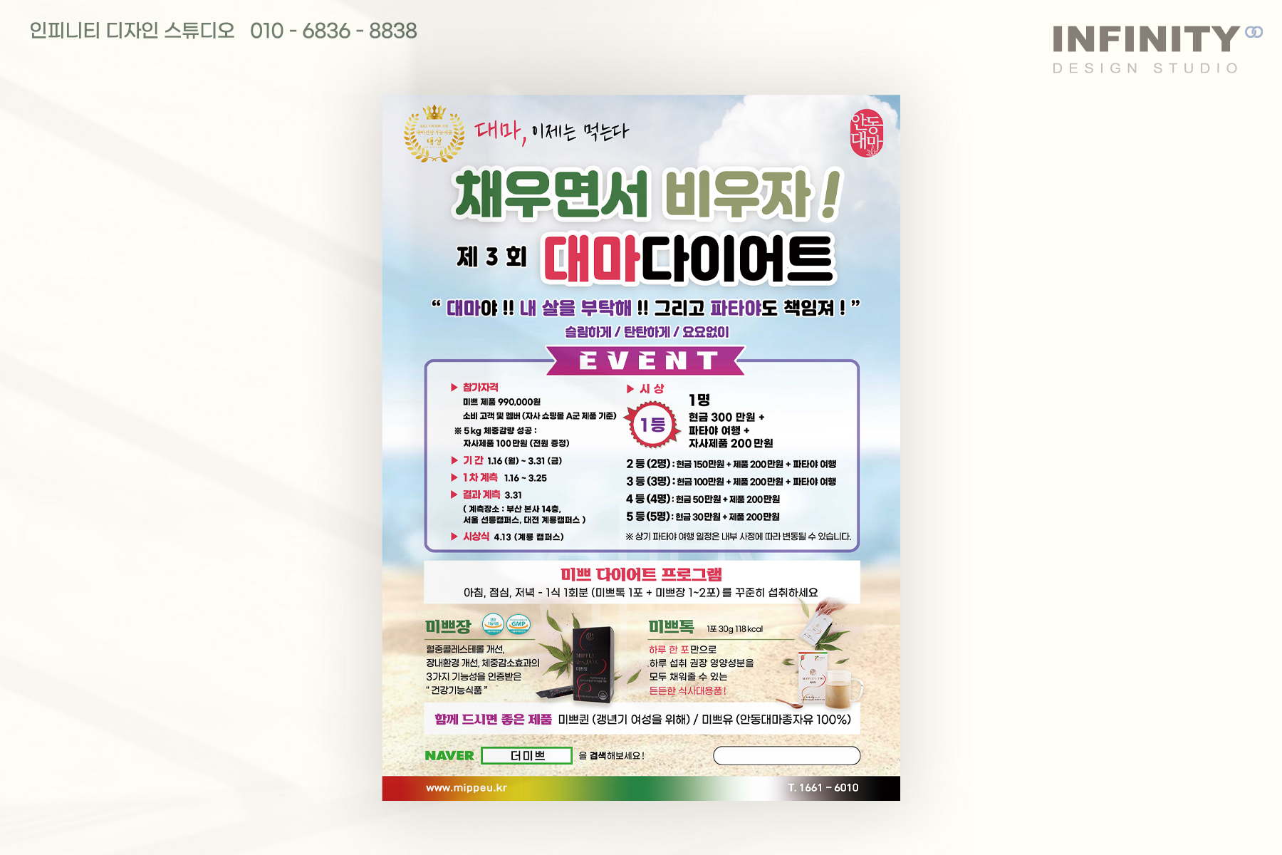 이벤트 내용을 담아 깔끔한 레이아웃 디자인으로
