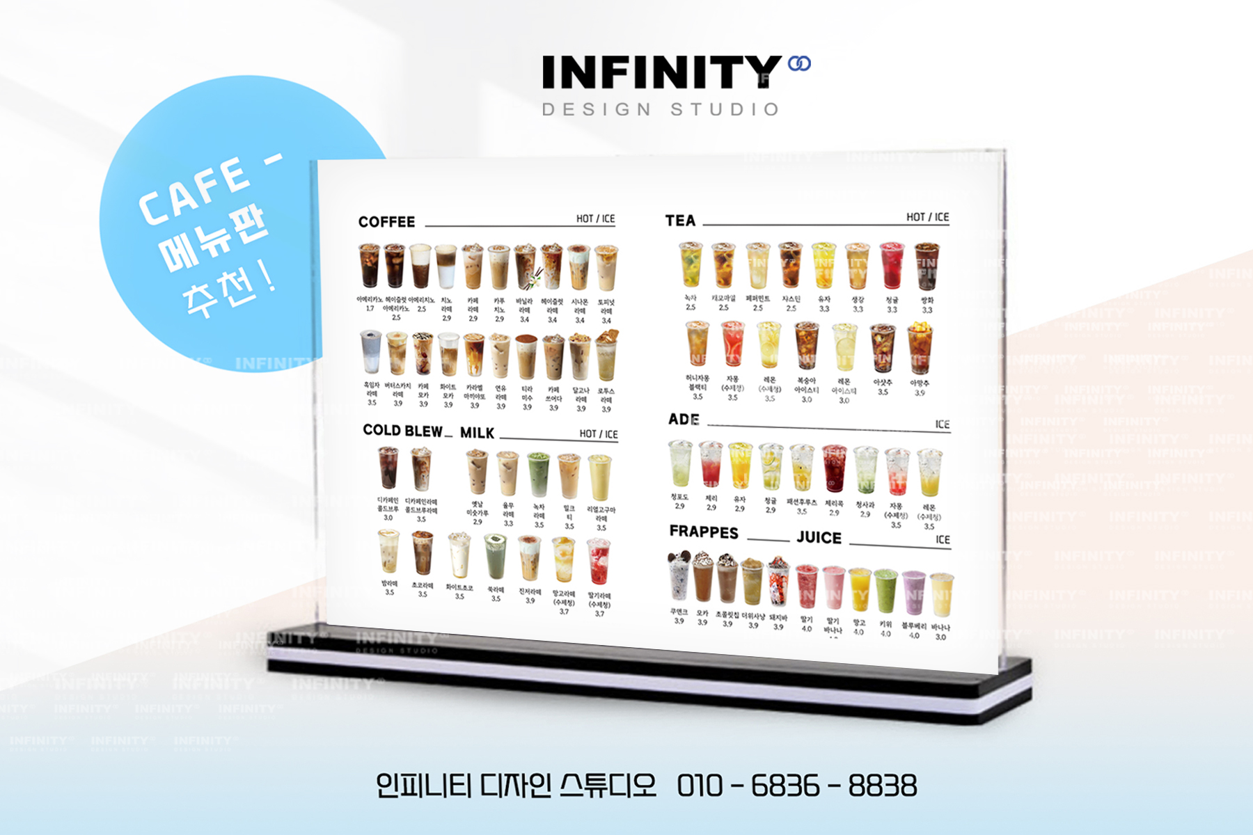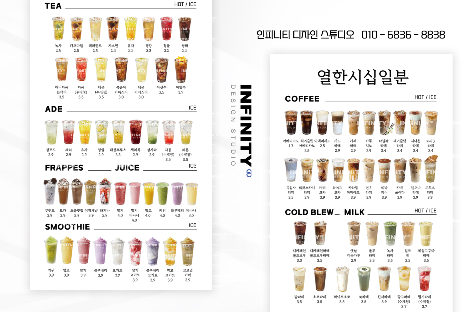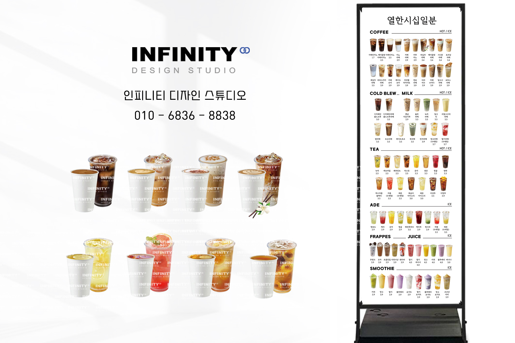수많은 카페 및 F&B 브랜드카페 키오스크 메뉴사진 세트 진행으로우리매장 메뉴에 맞게 맞춤 진행해드립니다 :) 안녕하세요, 디자인, 제작 전문인피니티 디자인 스튜디오 입니다 :) 오늘은 카페