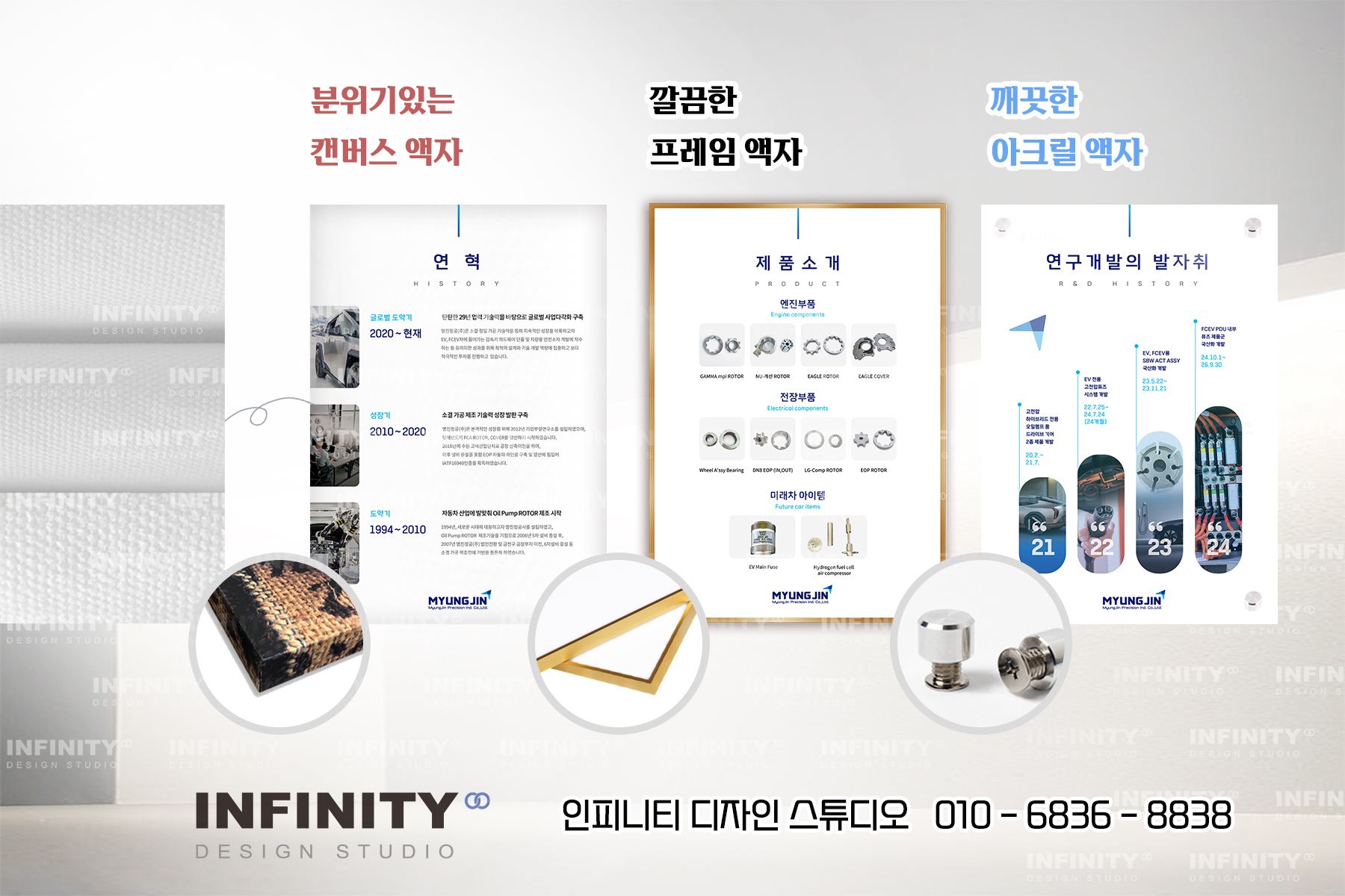 회사소개·제품소개·연혁 전시용 맞춤 액자 디자인 제작