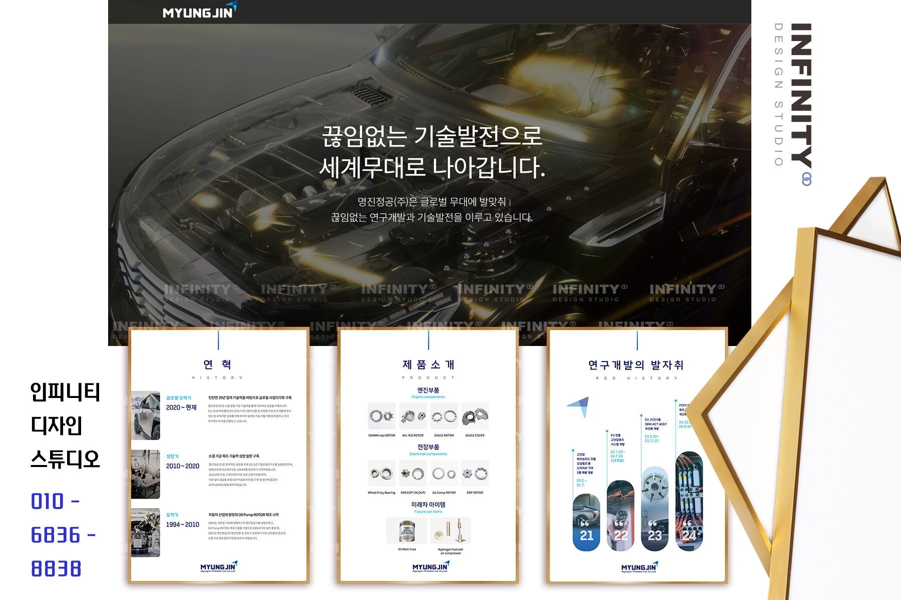 이에 따라 회사소개, 제품 주요 특징, 연혁 등 중요한 항목을 포함한 액자 전시 구성을 기획 및 제작했습니다.