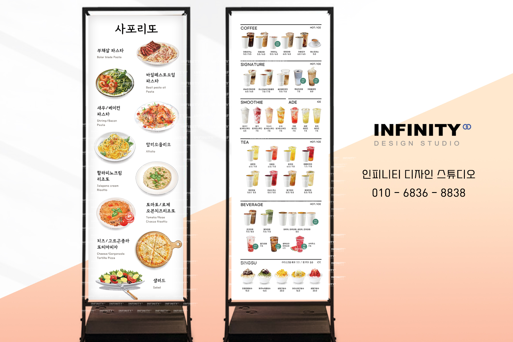 안녕하세요, 디자인, 제작 전문인피니티 디자인 스튜디오 입니다 :) 카페 키오스크 운영중이시라면꼭 필요한 메뉴사진세트 소식 드립니다 배너, 메뉴판, DID 디자인, LED 디자인,전자 메뉴판, 키오