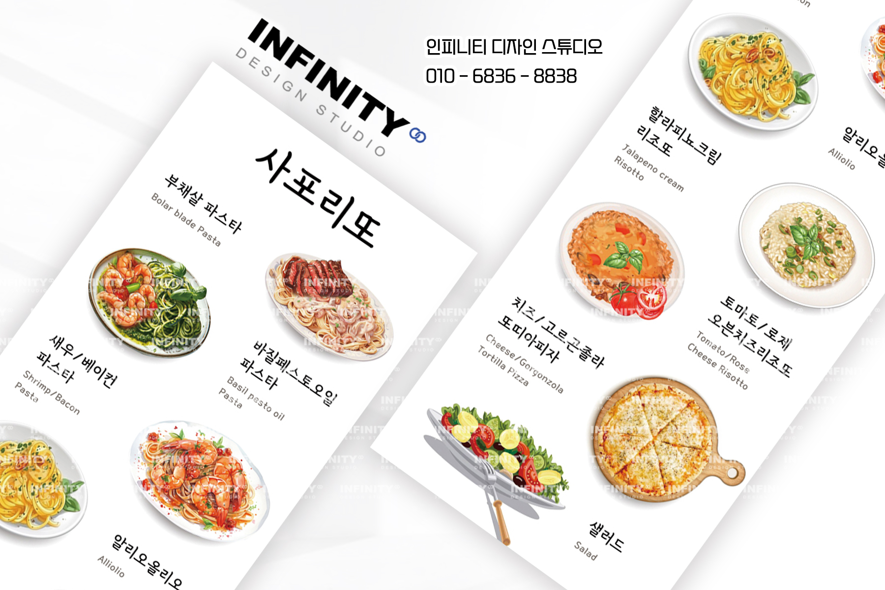 안녕하세요, 포스터 디자인 & 인쇄 제작 전문인피니티 디자인 스튜디오 입니다. [ 포스터 디자인 & 인쇄 ] 레스토랑, 카페, 식당 메뉴 포스터 제작 전문 이탈리안 레스토랑에서