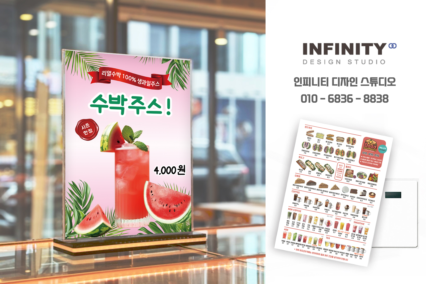 안녕하세요, 디자인, 제작 전문인피니티 디자인 스튜디오 입니다 :) 카페 키오스크 운영중이시라면꼭 필요한 메뉴사진세트 소식 드립니다 배너, 메뉴판, DID 디자인, LED 디자인,전자 메뉴판, 키오