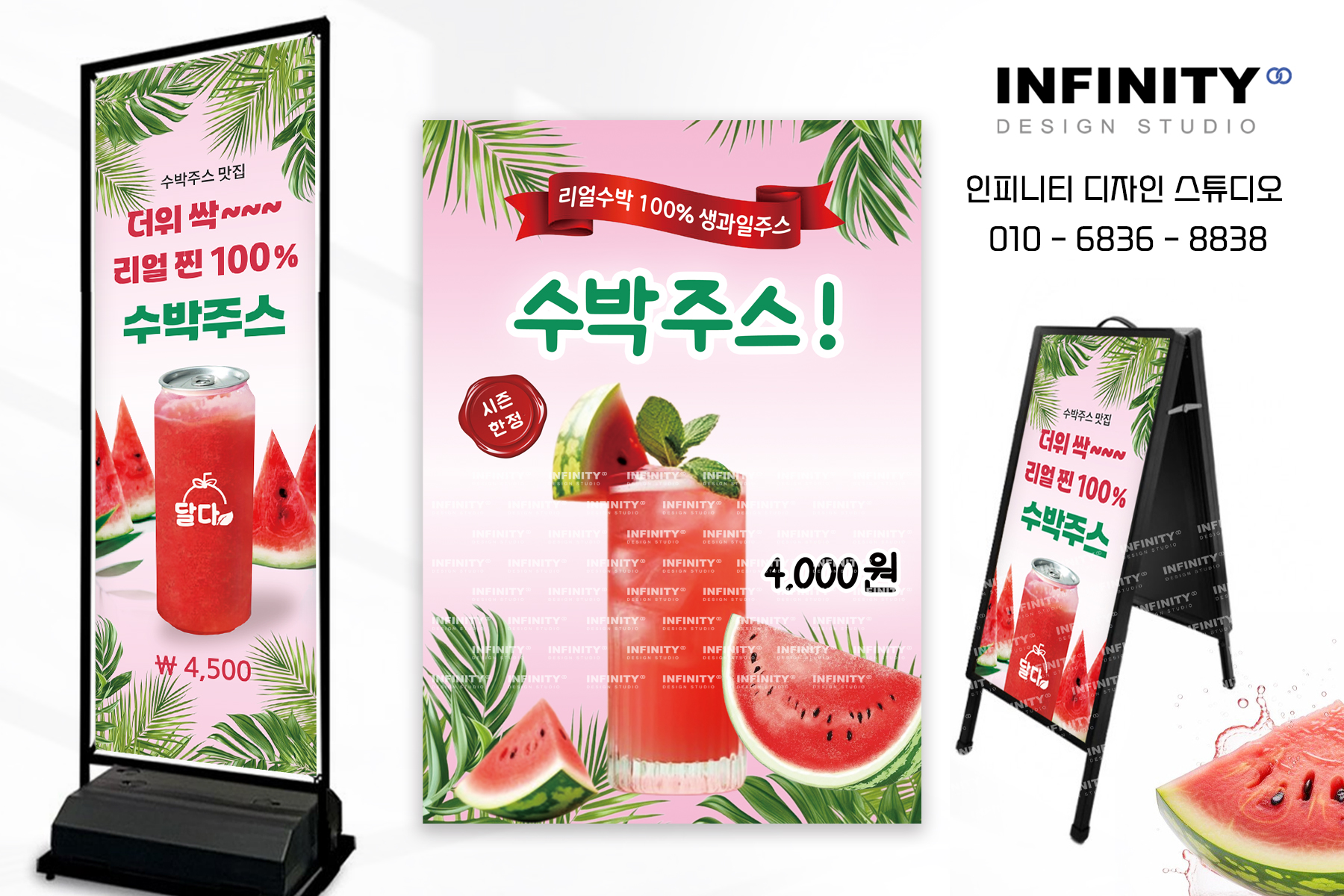 수박주스 홍보를 위한 배너, 포스터, 입간판,