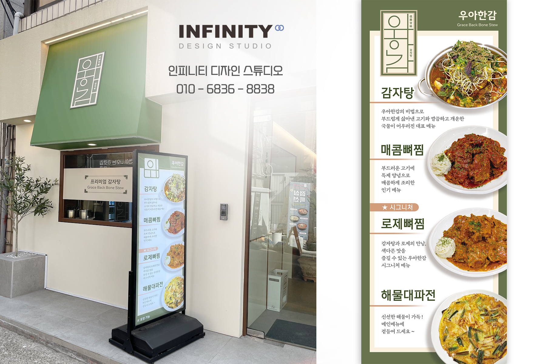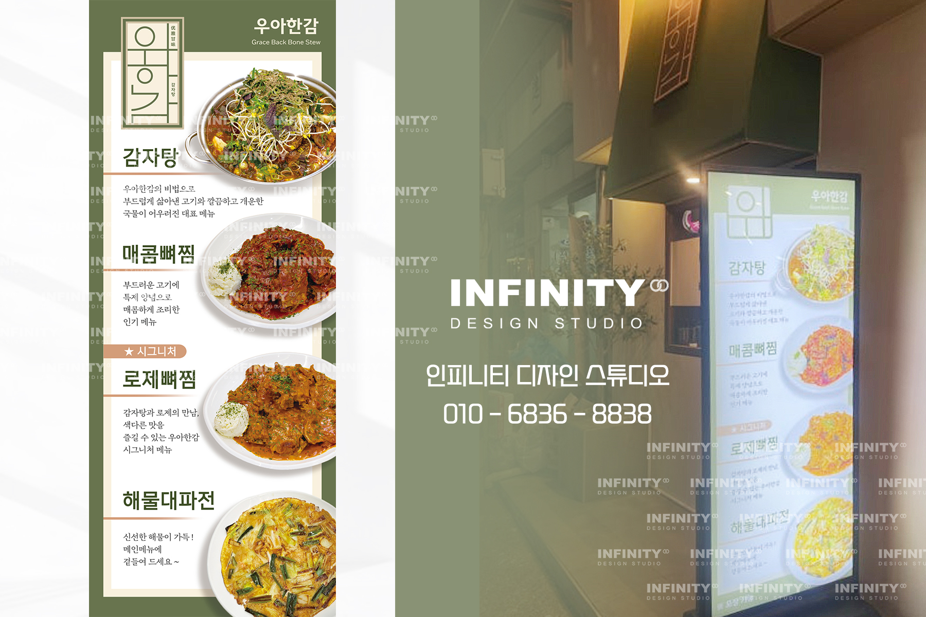 음식점 액자 제작, 메뉴 액자, 감자탕 액자, 음식점 LED배너 디자인 제작