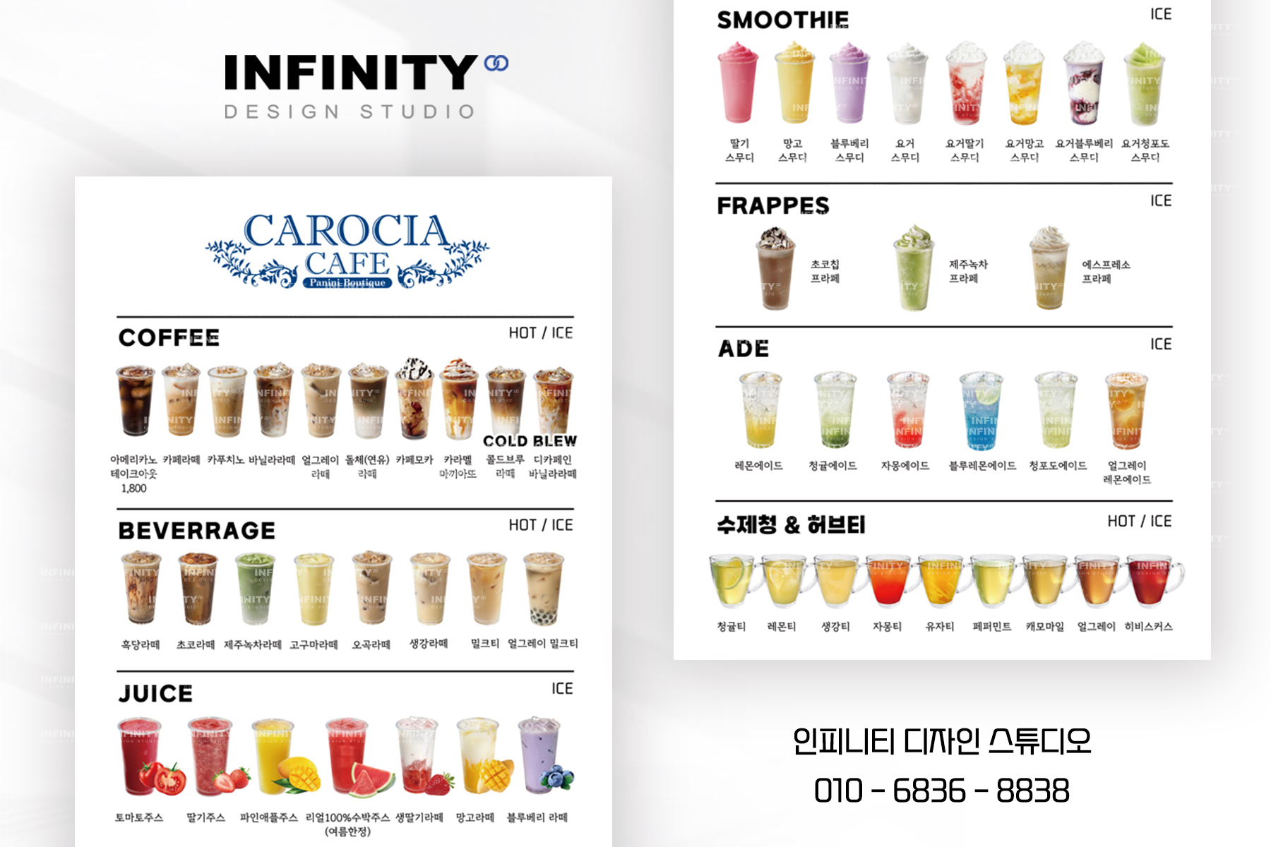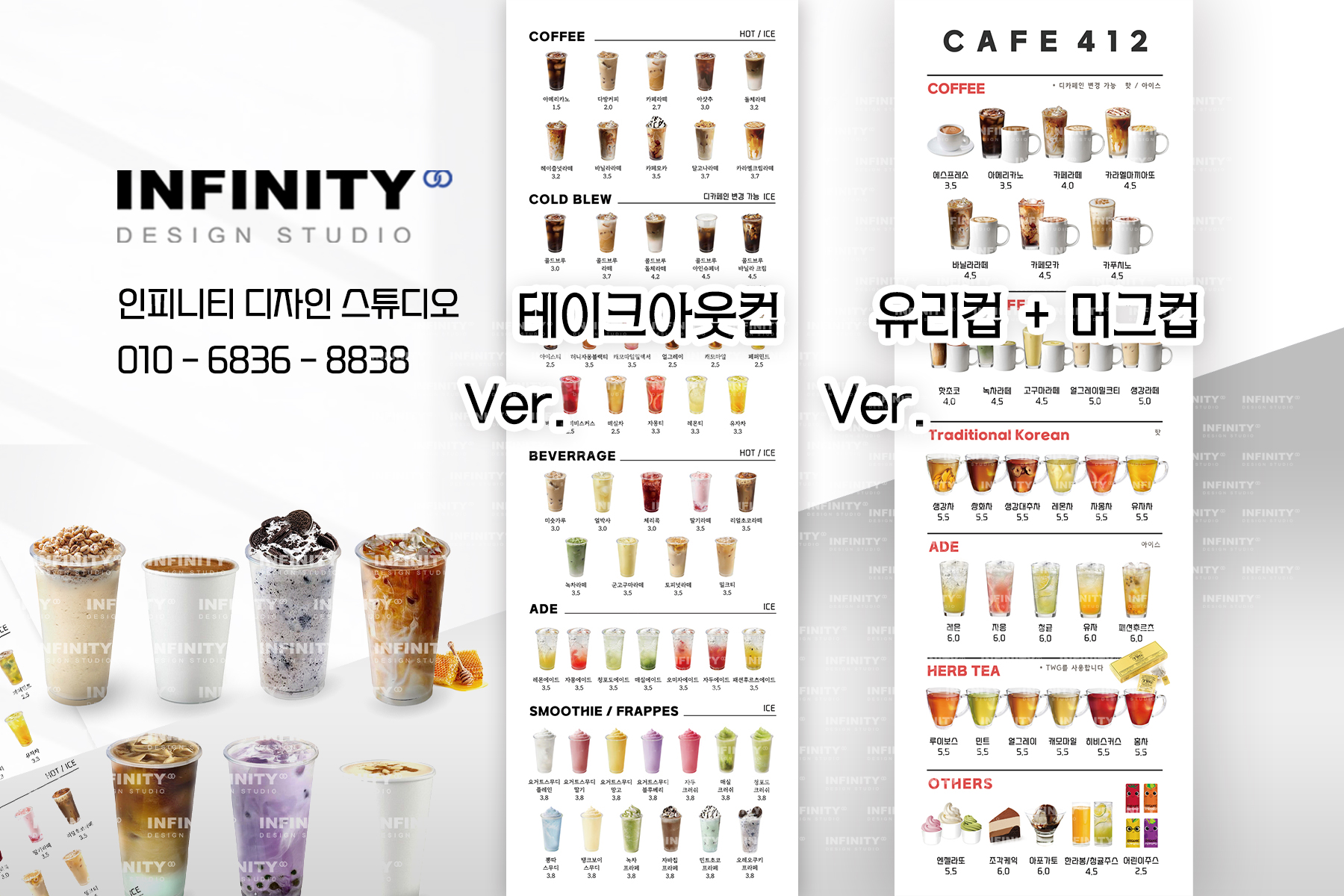 안녕하세요, 디자인, 제작 전문인피니티 디자인 스튜디오 입니다 :)배달·포장 고객에게 센스있게건네는 홍보 아이템 카페를 운영하면서 항상 고민되는 것 중 하나,바로 메뉴판이죠. 특히 요즘