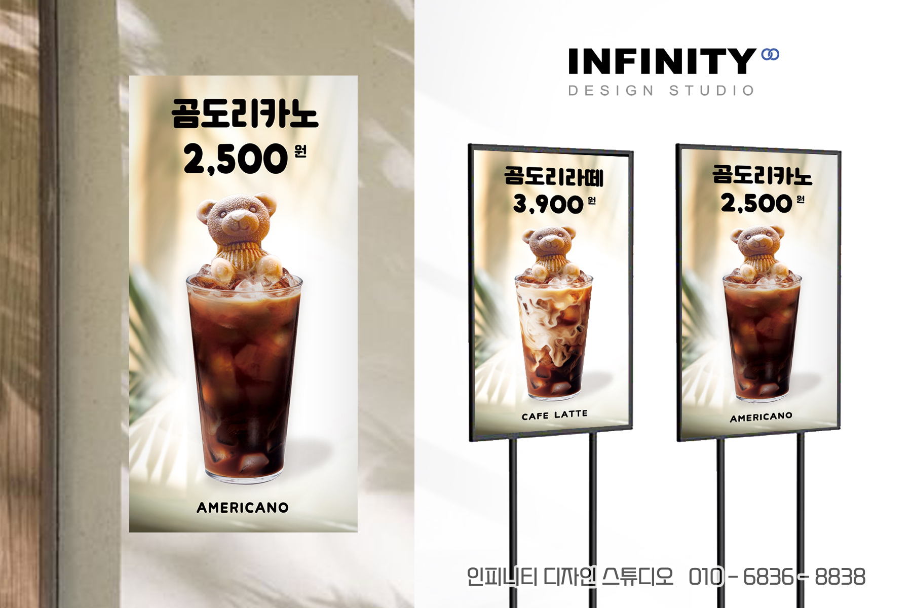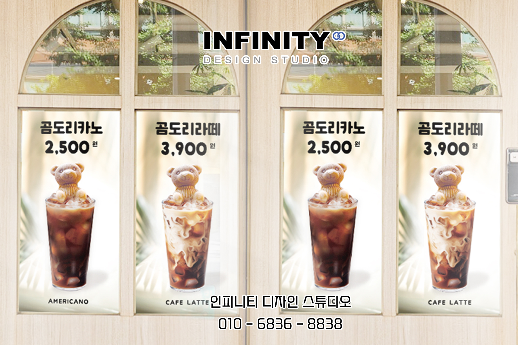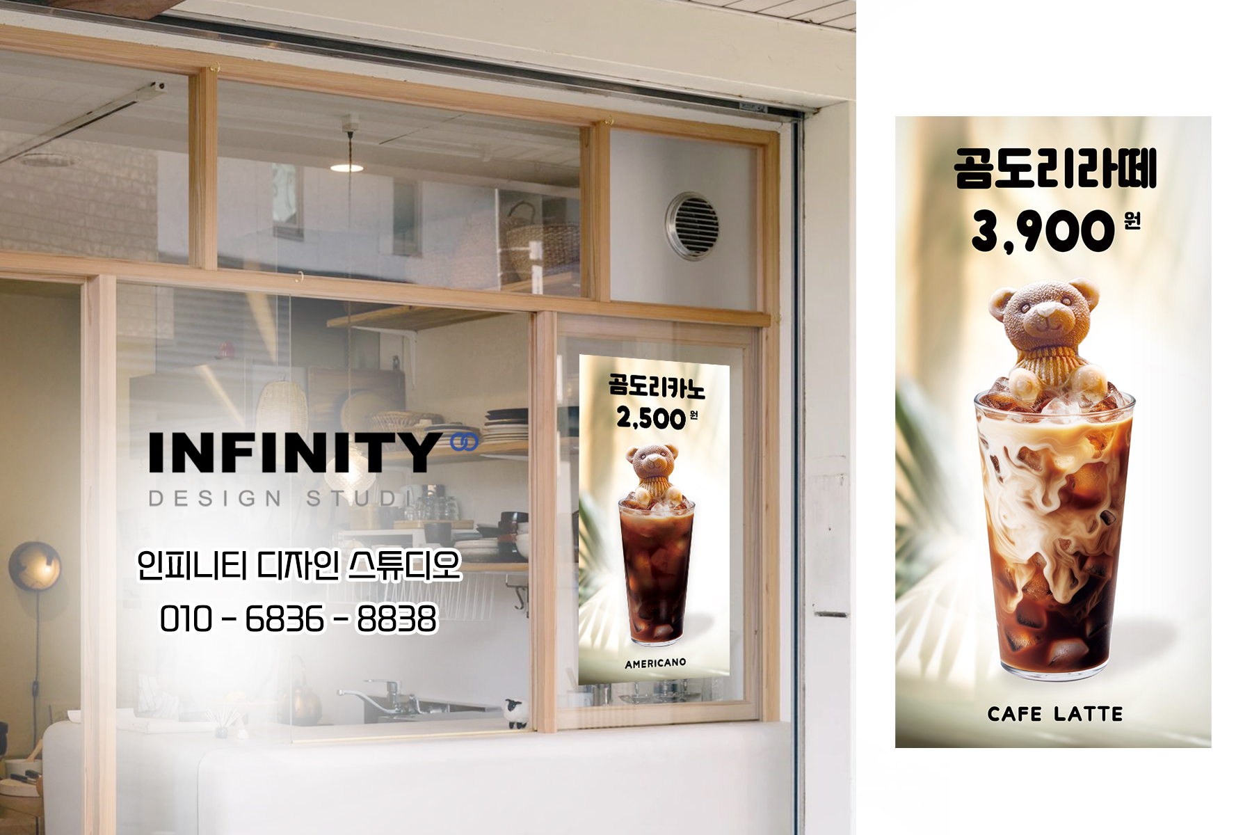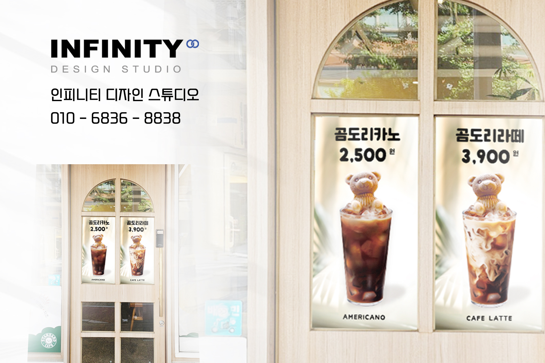 안녕하세요, 디자인, 제작 전문인피니티 디자인 스튜디오 입니다 오늘은 카페 홍보물 제작 소식 포스팅준비했습니다 :) 카페 오픈 준비로 의뢰주신 카페에서키오스크사진세트, 메뉴판배너, 메