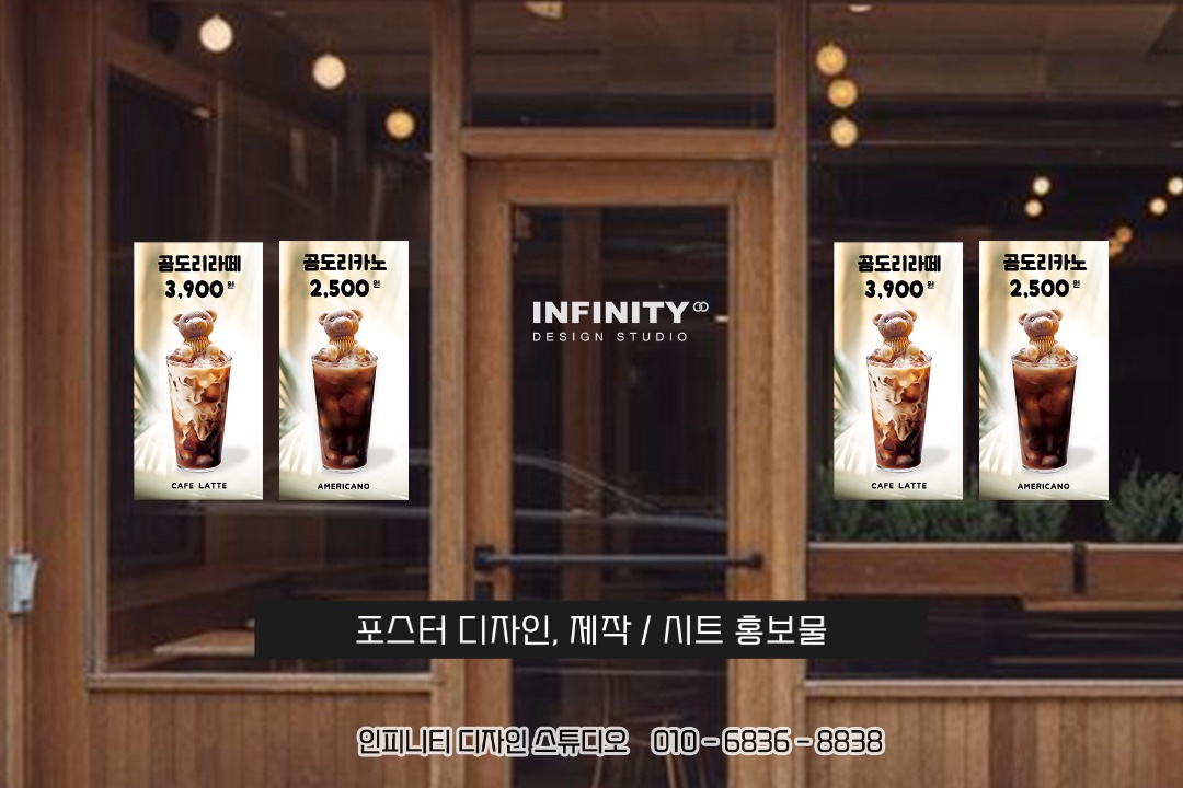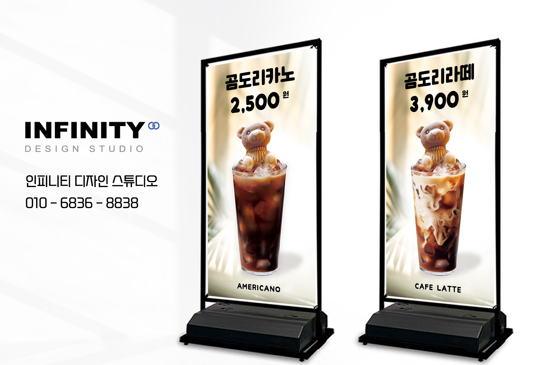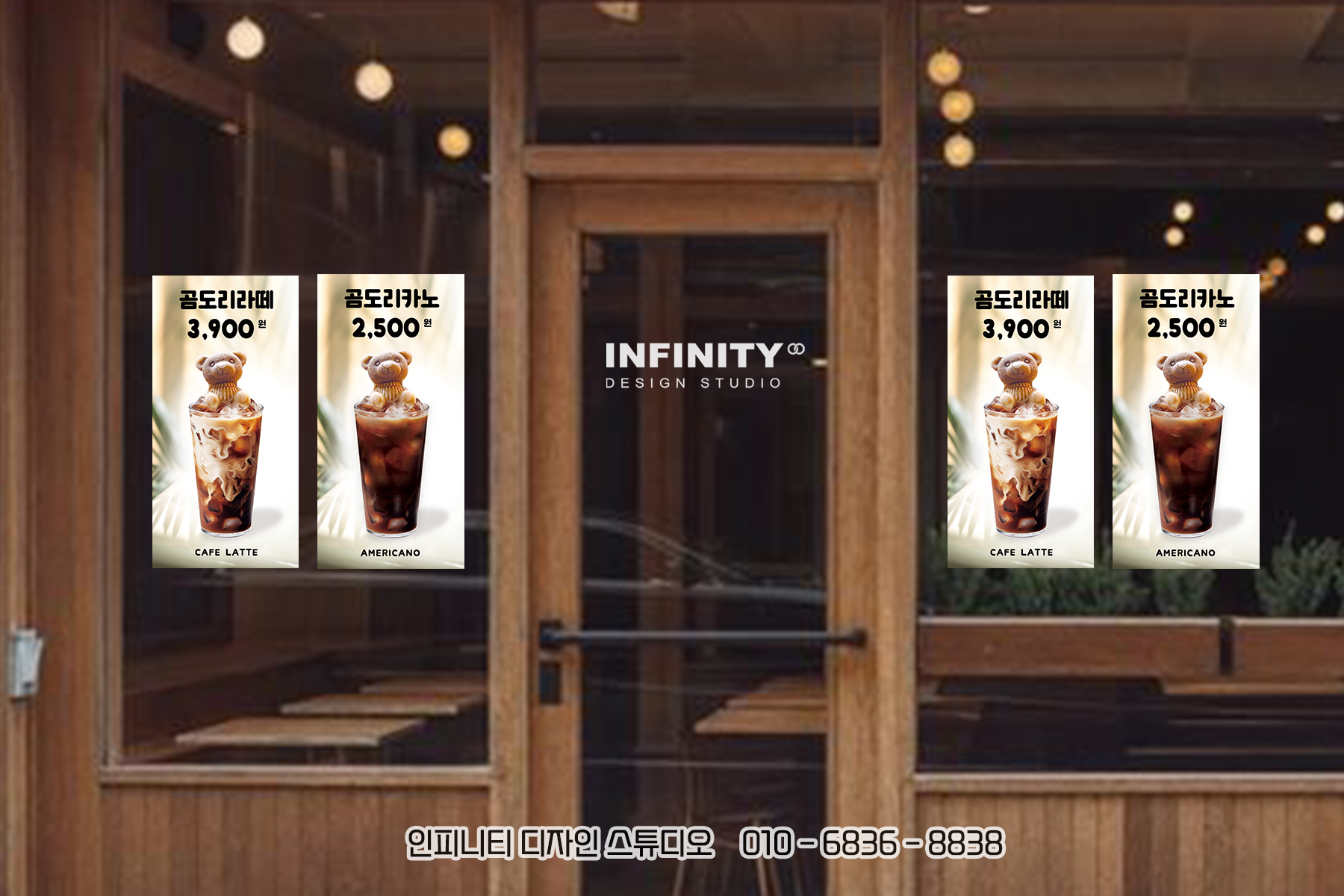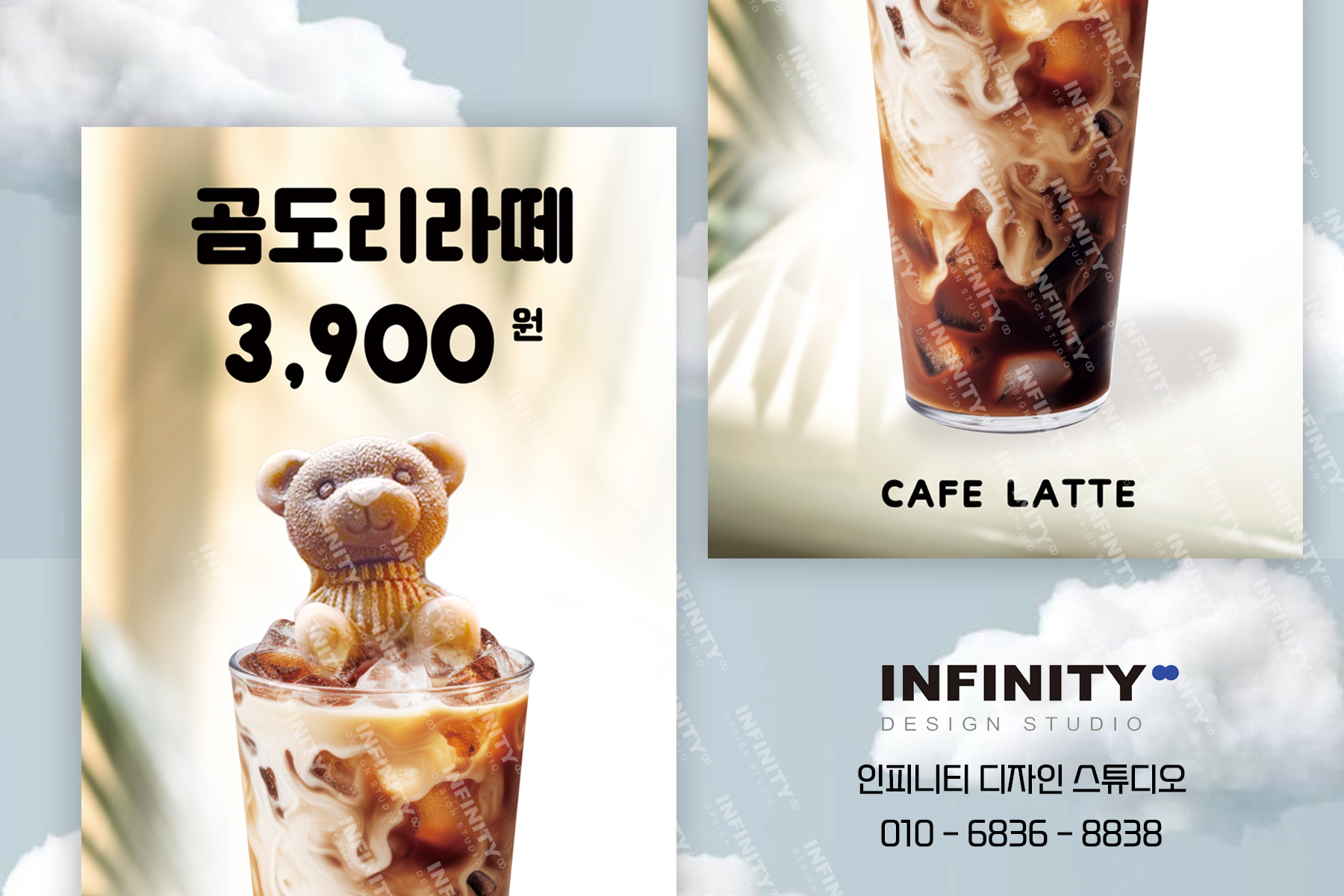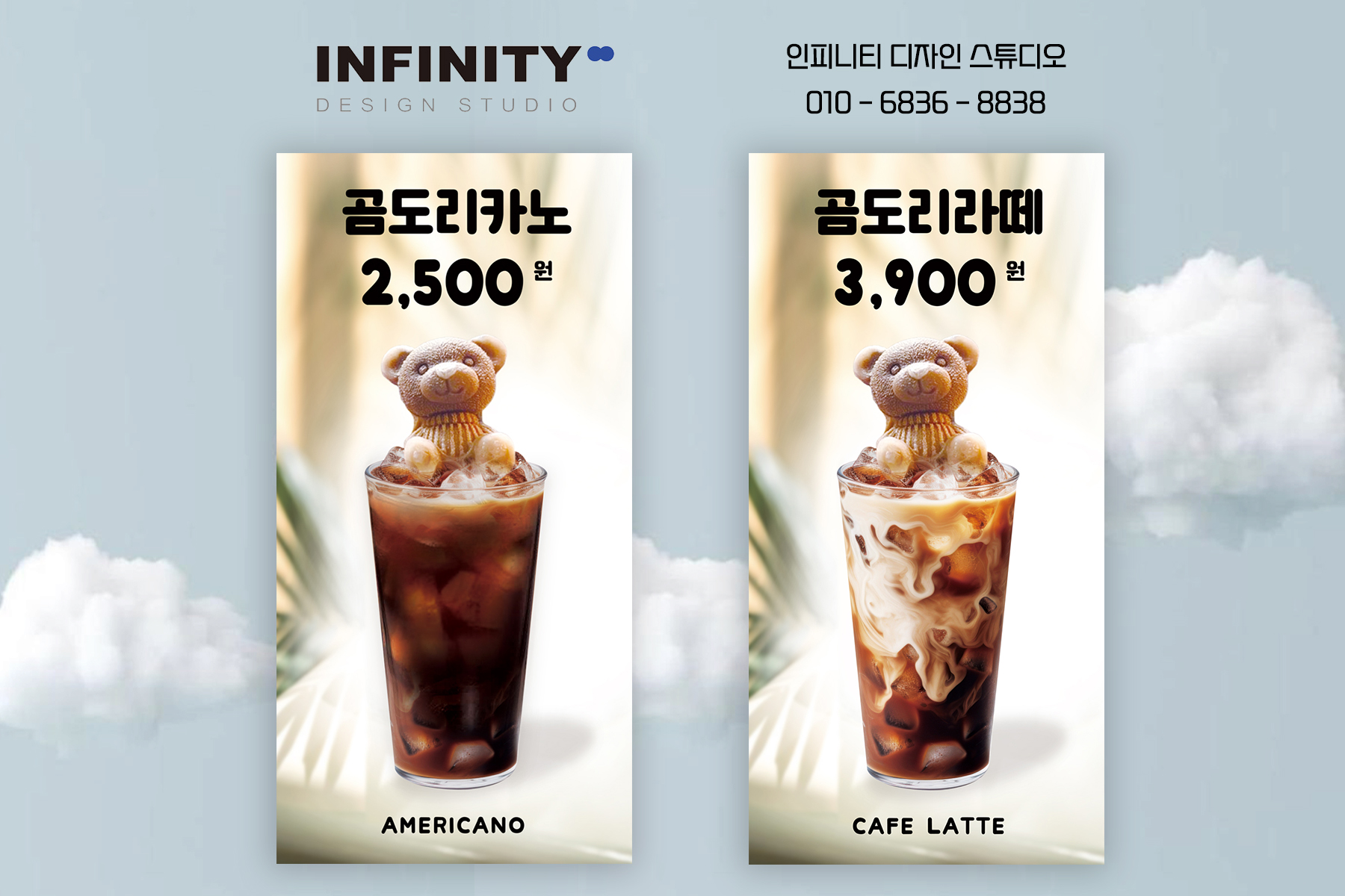 안녕하세요, 디자인, 제작 전문인피니티 디자인 스튜디오 입니다 오늘은 카페 홍보물 제작 소식 포스팅준비했습니다 :) 카페 오픈 준비로 의뢰주신 카페에서키오스크사진세트, 메뉴판배너, 메