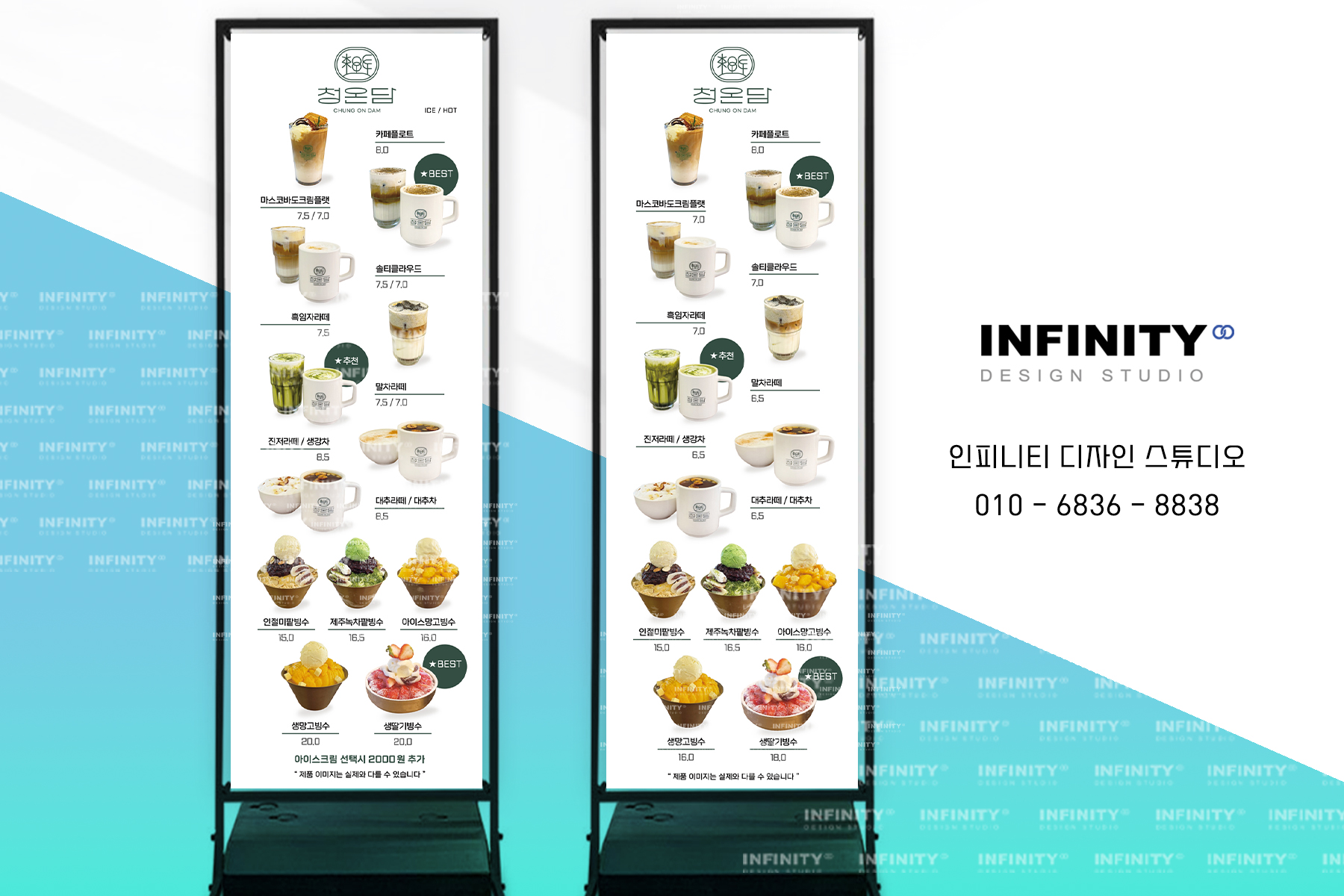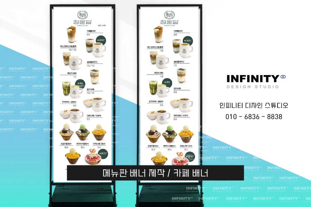 안녕하세요, 디자인, 제작 전문인피니티 디자인 스튜디오 입니다 :) 카페 키오스크 운영중이시라면꼭 필요한 메뉴사진세트 소식 드립니다 배너, 메뉴판, DID 디자인, LED 디자인,전자 메뉴판, 키오