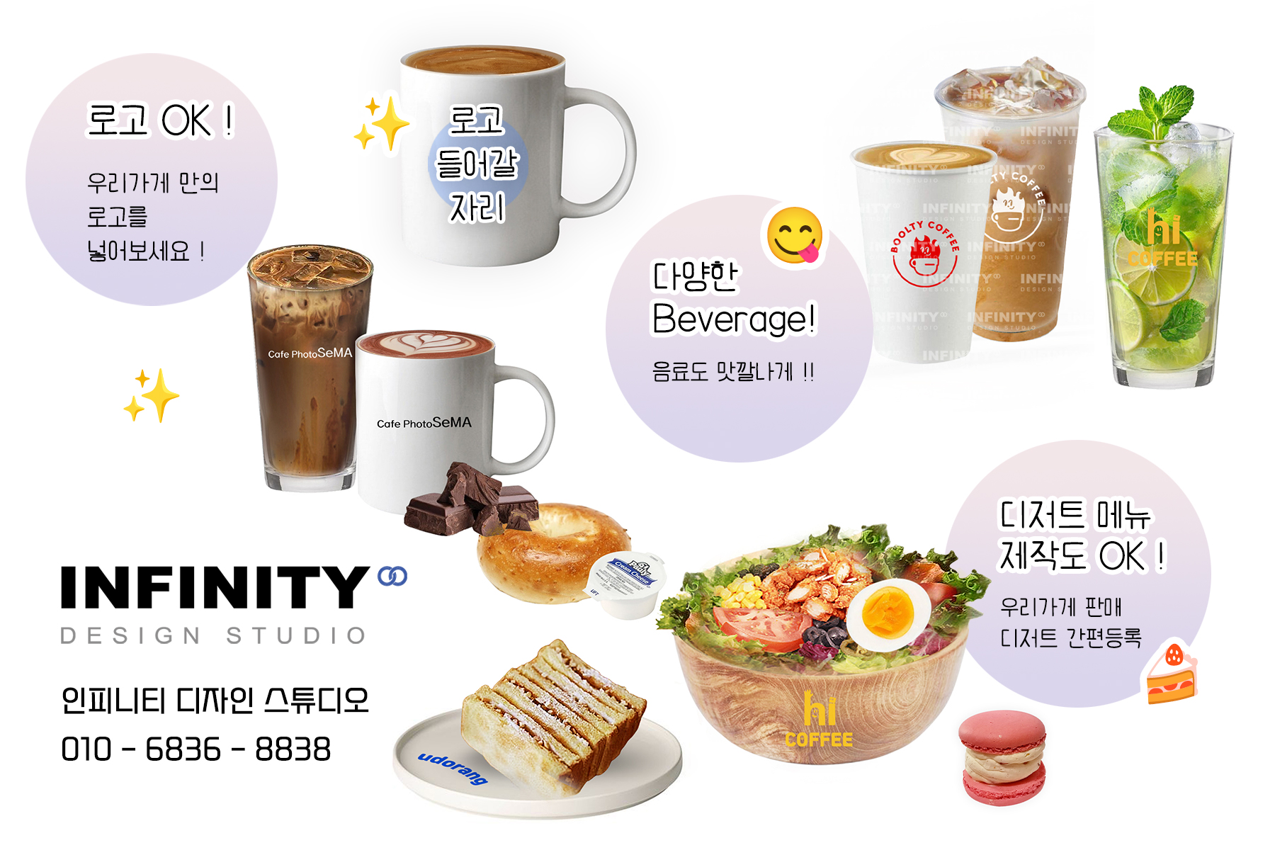 안녕하세요, 디자인, 제작 전문인피니티 디자인 스튜디오 입니다 카페 메뉴포스터 / 배너 디자인, 제작포스팅 드립니다 :) 우리매장에 필요한 메뉴와 사이즈, 수량으로맞춤 진행해드리는 서비스