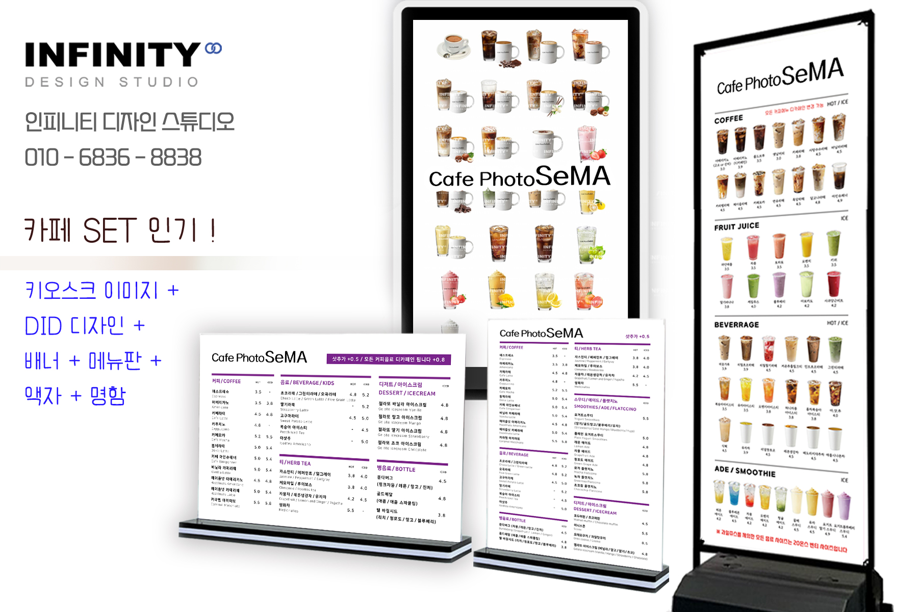 안녕하세요, 디자인, 제작 전문인피니티 디자인 스튜디오 입니다 :) 제주 카페 오픈 준비 ! DID 디자인부터 키오스크 메뉴사진, 메뉴판·배너까지 한 번에 ! 오늘은 제주 카페 오픈 준비를계획하고