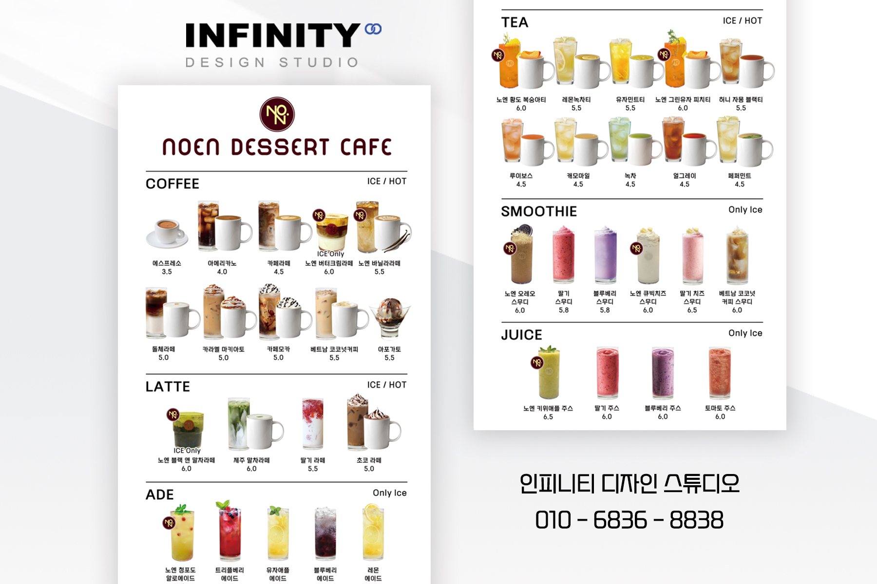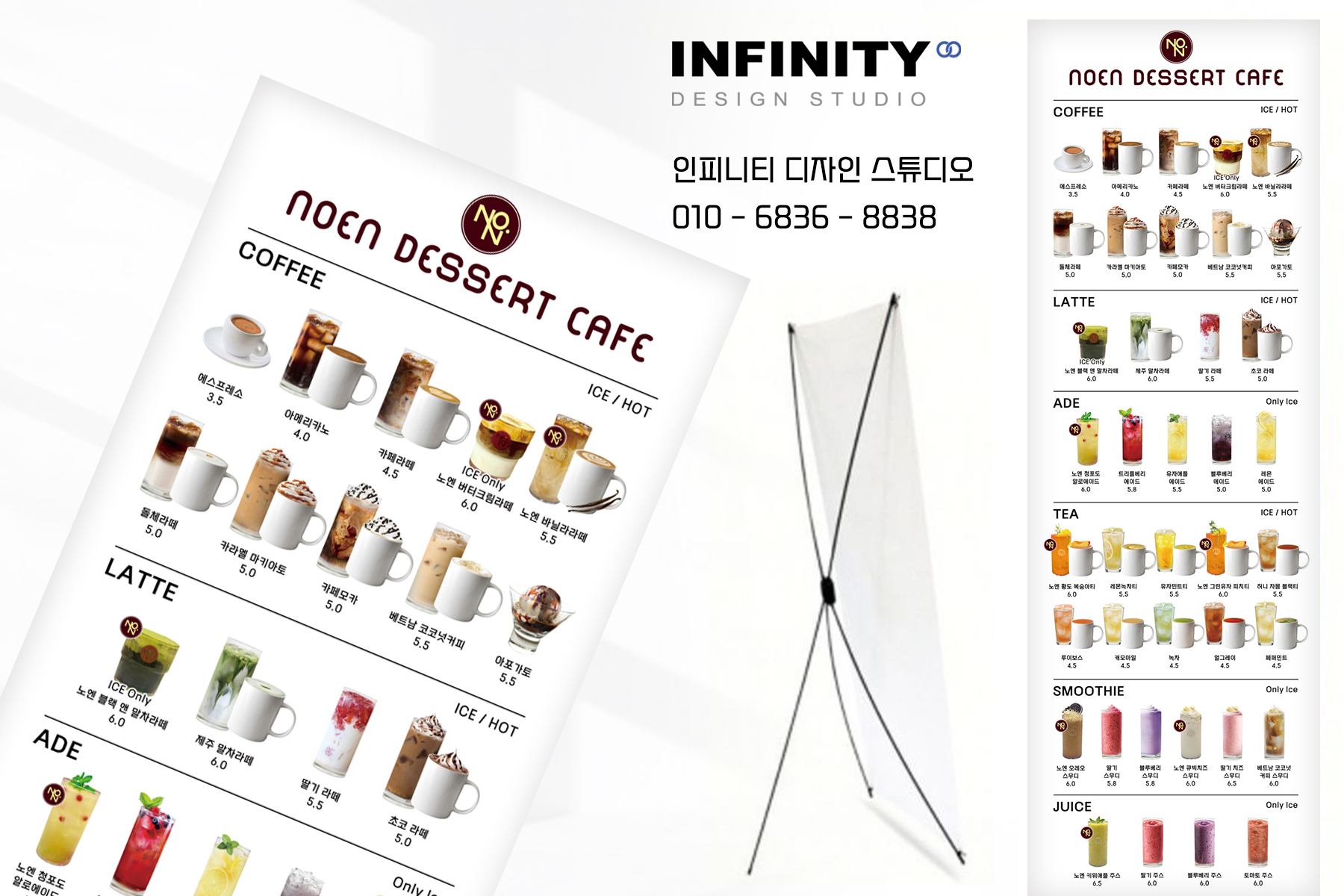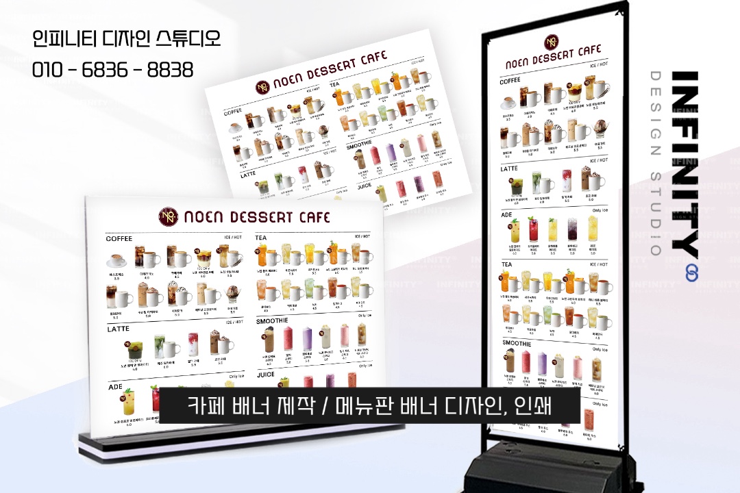 안녕하세요, 디자인, 제작 전문인피니티 디자인 스튜디오 입니다 :)오늘은 카페 메뉴판, 포스터 제작 소식포스팅 드리니 함께 보실까요? 카페 오픈을 준비하며 카페 메뉴판, 포스터,배너, 키오스