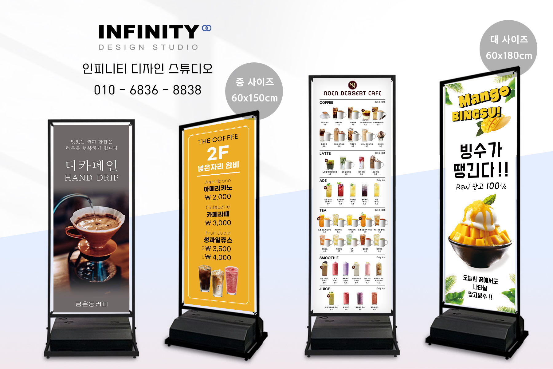 안녕하세요, 디자인, 제작 전문인피니티 디자인 스튜디오 입니다.오늘은 카페 오픈 준비하며 의뢰해주신카페 배너, 메뉴판 제작 소식 포스팅드려요 :) 카페 메뉴판 배너 + 아크릴 메뉴판SET 세