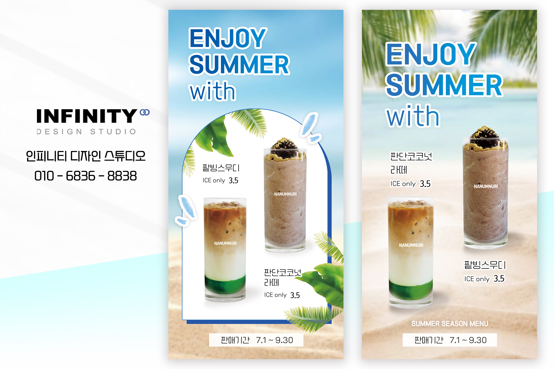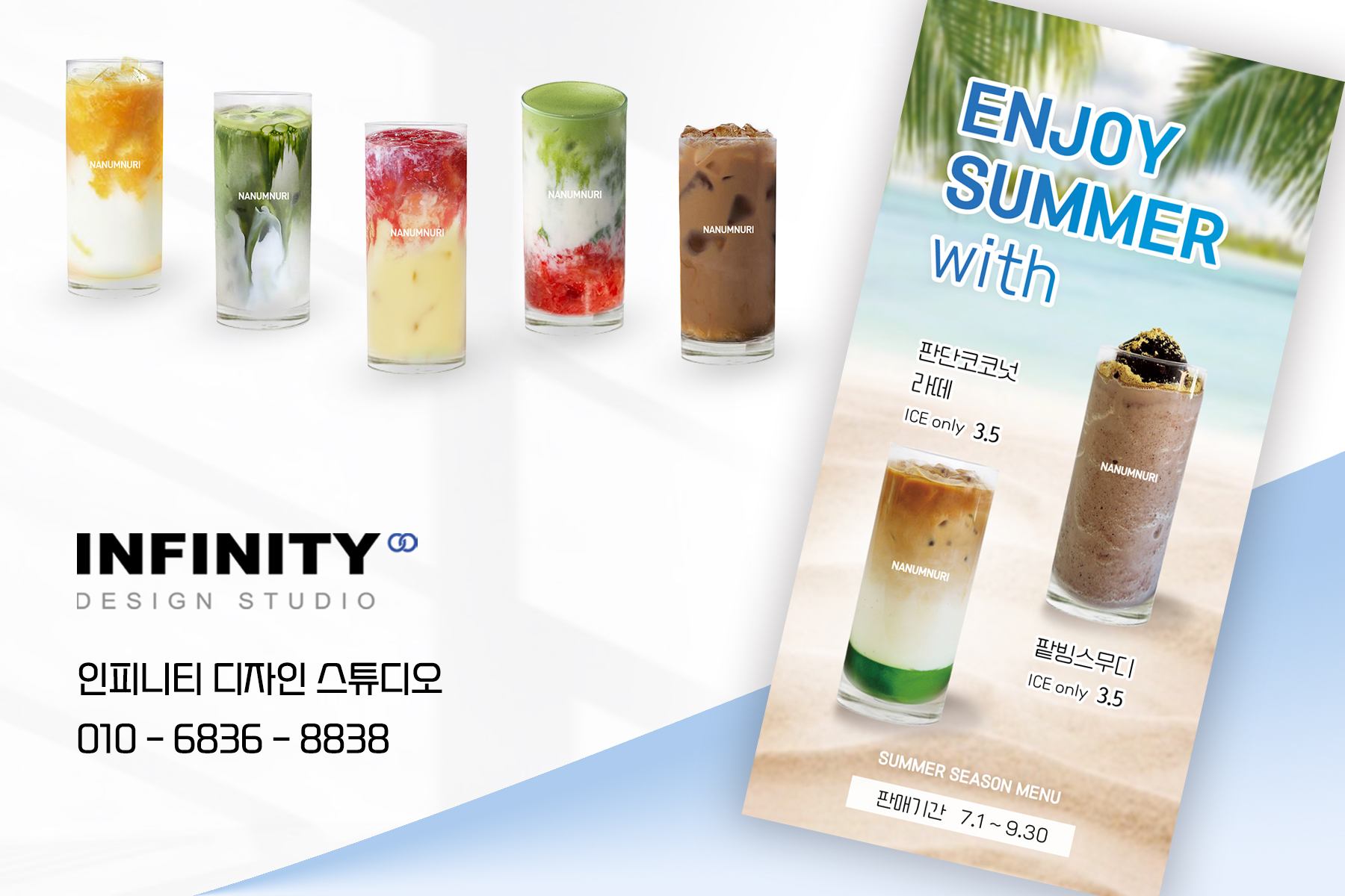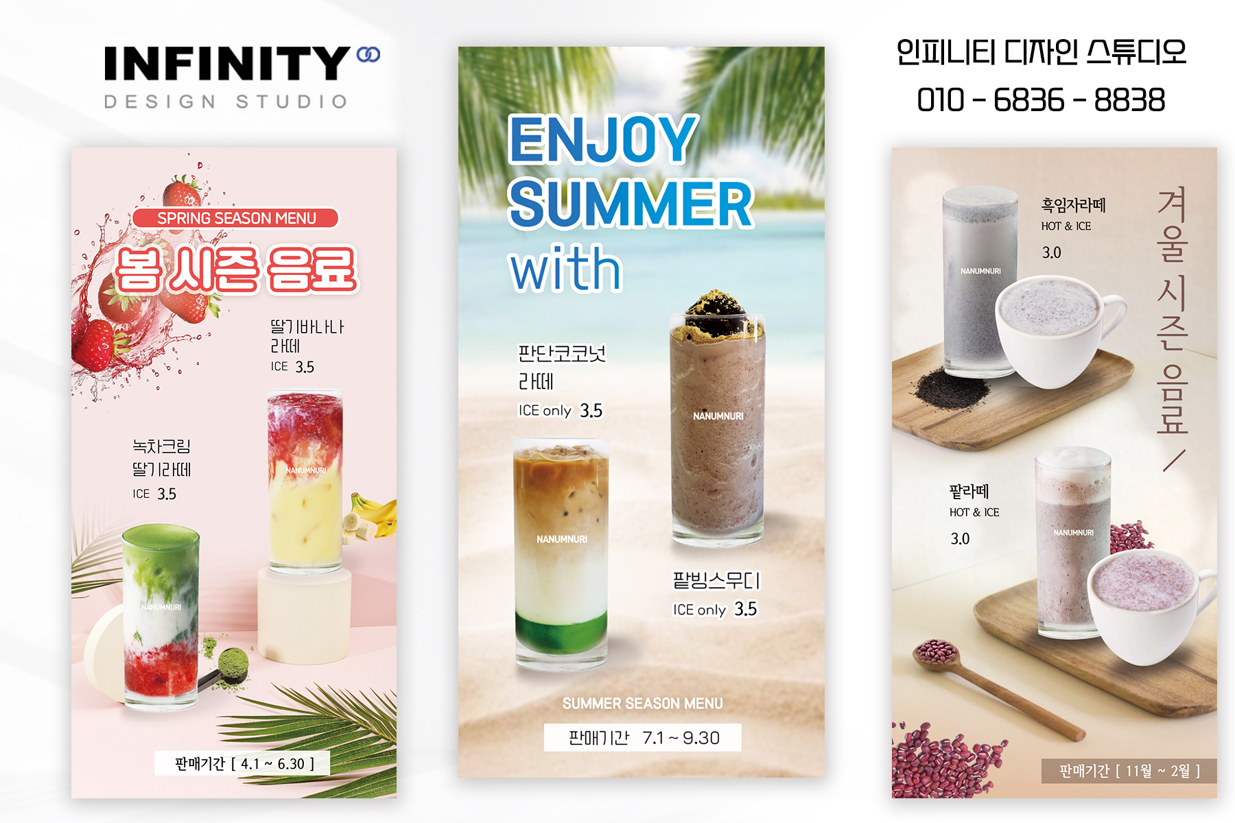안녕하세요, 디자인, 제작 전문인피니티 디자인 스튜디오 입니다 :)오늘은 카페 배너와 포스터 제작 소식포스팅 준비했습니다 홍보하고 싶은 메뉴 구성으로 의뢰해주신카페 배너 + 포스터 세트