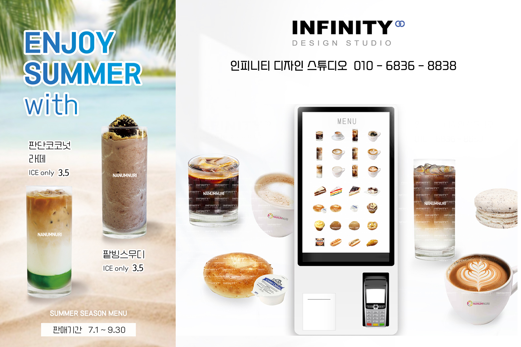 안녕하세요, 카페 홍보물 디자인, 제작 전문인피니티 디자인 스튜디오 입니다.오늘은 카페 키오스크 운영 중 필수템커피, 음료 사진 촬영제작 서비스소식 포스팅 입니다 :) 번거로운 촬영없이