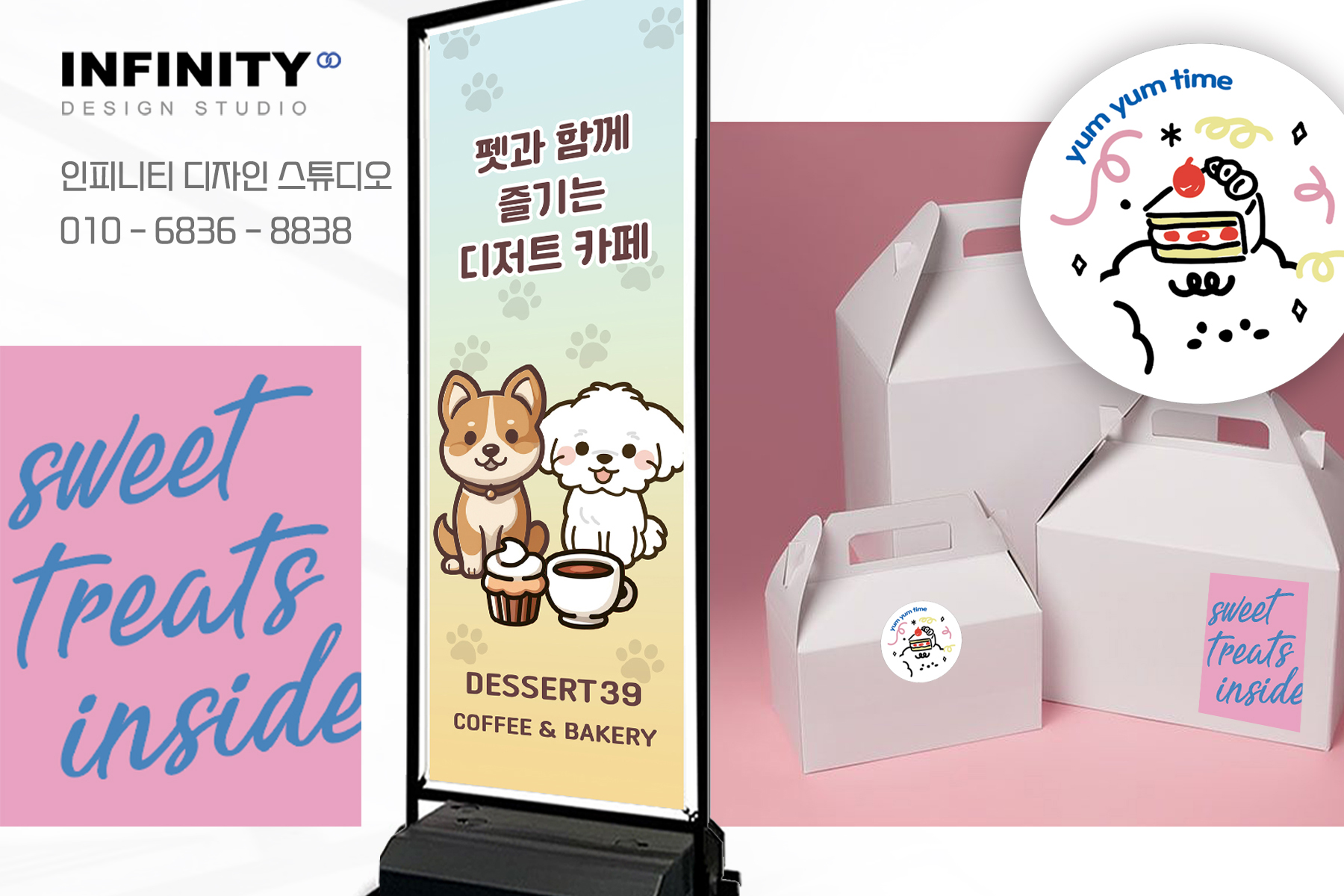 홍보 배너와 함께 디저트 케이스 등에