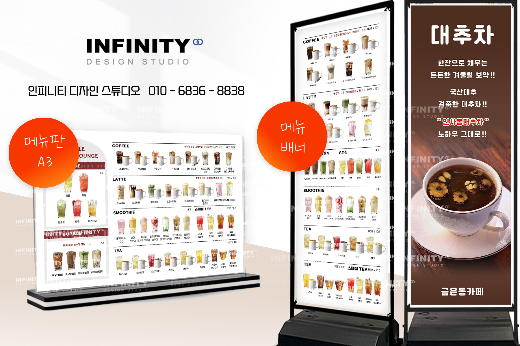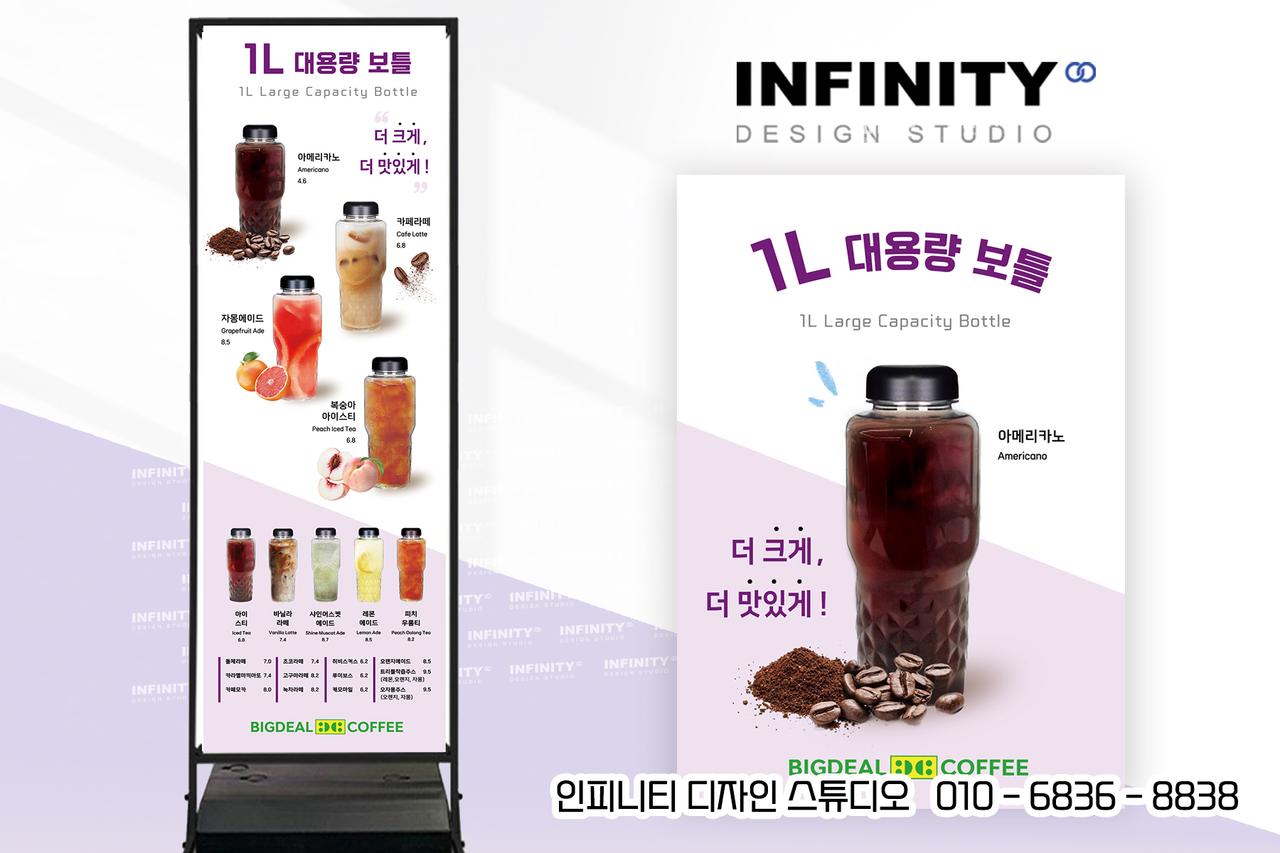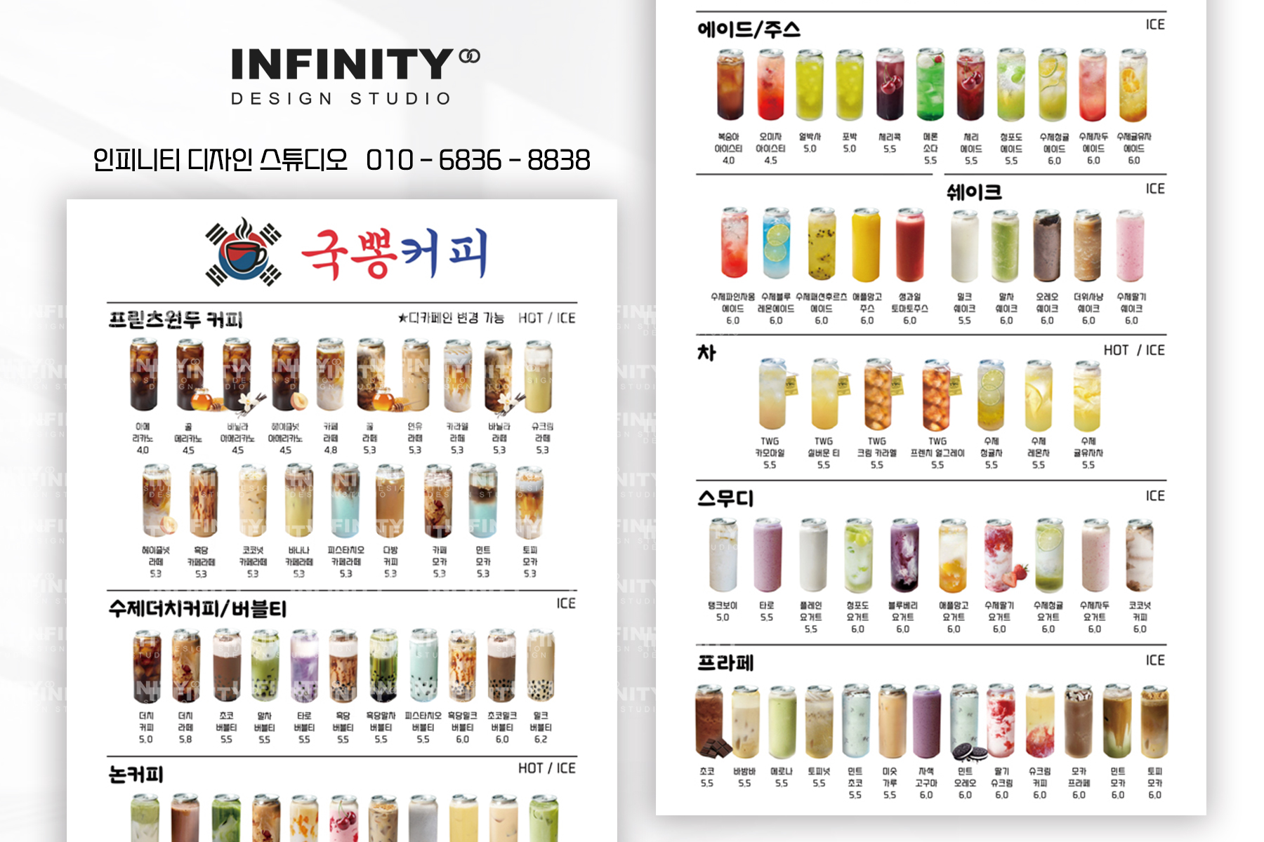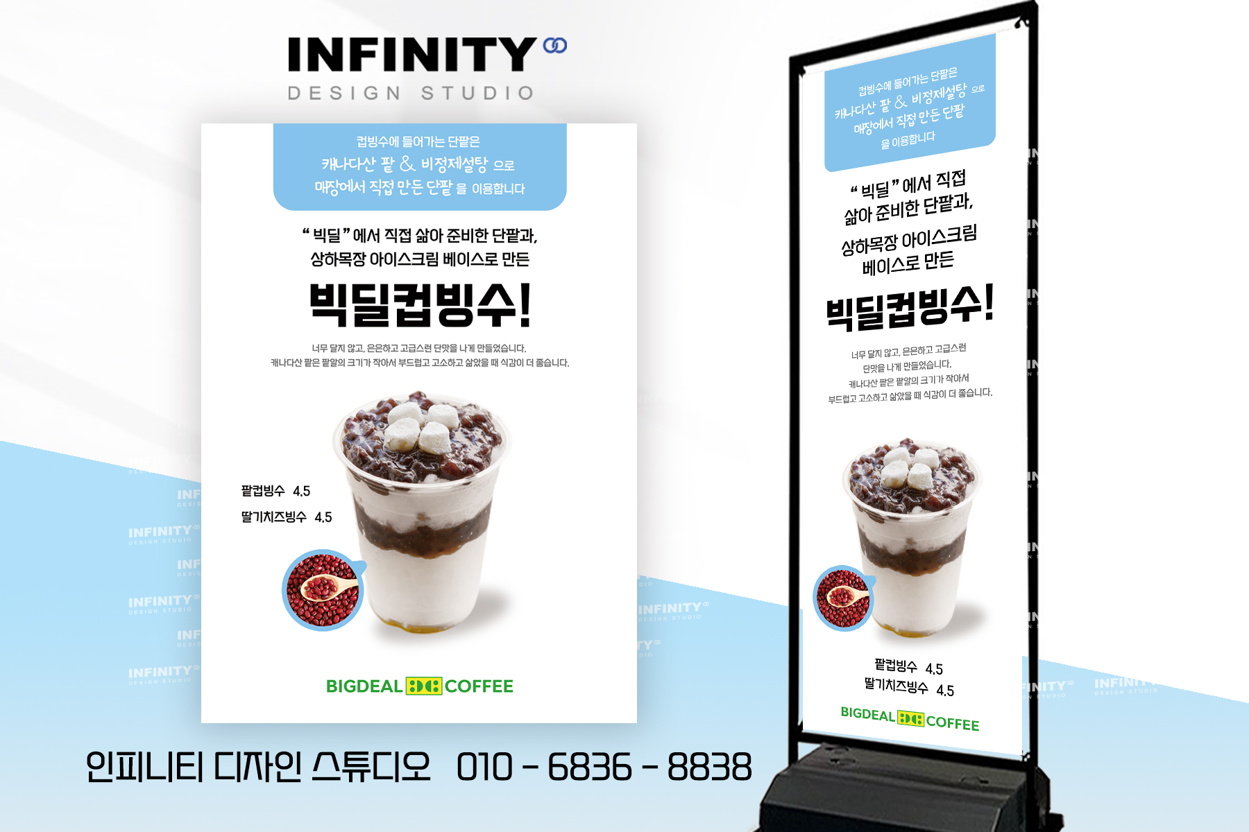 안녕하세요, 디자인, 제작 전문인피니티 디자인 스튜디오 입니다 :)오늘은 카페 배너와 포스터 제작 소식포스팅 준비했습니다 홍보하고 싶은 메뉴 구성으로 의뢰해주신카페 배너 + 포스터 세트