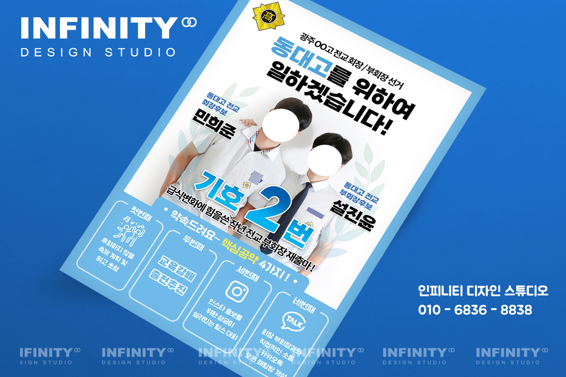 안녕하세요, 디자인, 제작 전문인피니티 디자인 스튜디오 입니다.오늘은 학교 전교회장 부회장 선거포스터디자인, 인쇄 제작 소식 포스팅 드립니다 원하는 디자인 선택 후컬러, 사이즈, 수량