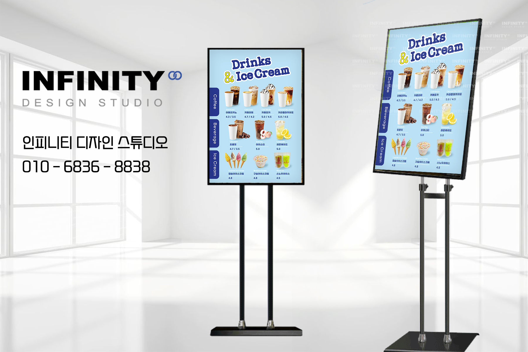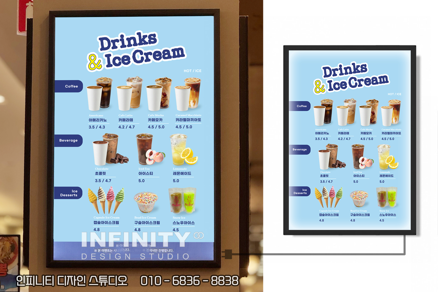 안녕하세요, 디자인, 제작 전문인피니티 디자인 스튜디오 입니다 :) 제주 카페 오픈 준비 ! DID 디자인부터 키오스크 메뉴사진, 메뉴판·배너까지 한 번에 ! 오늘은 제주 카페 오픈 준비를계획하고