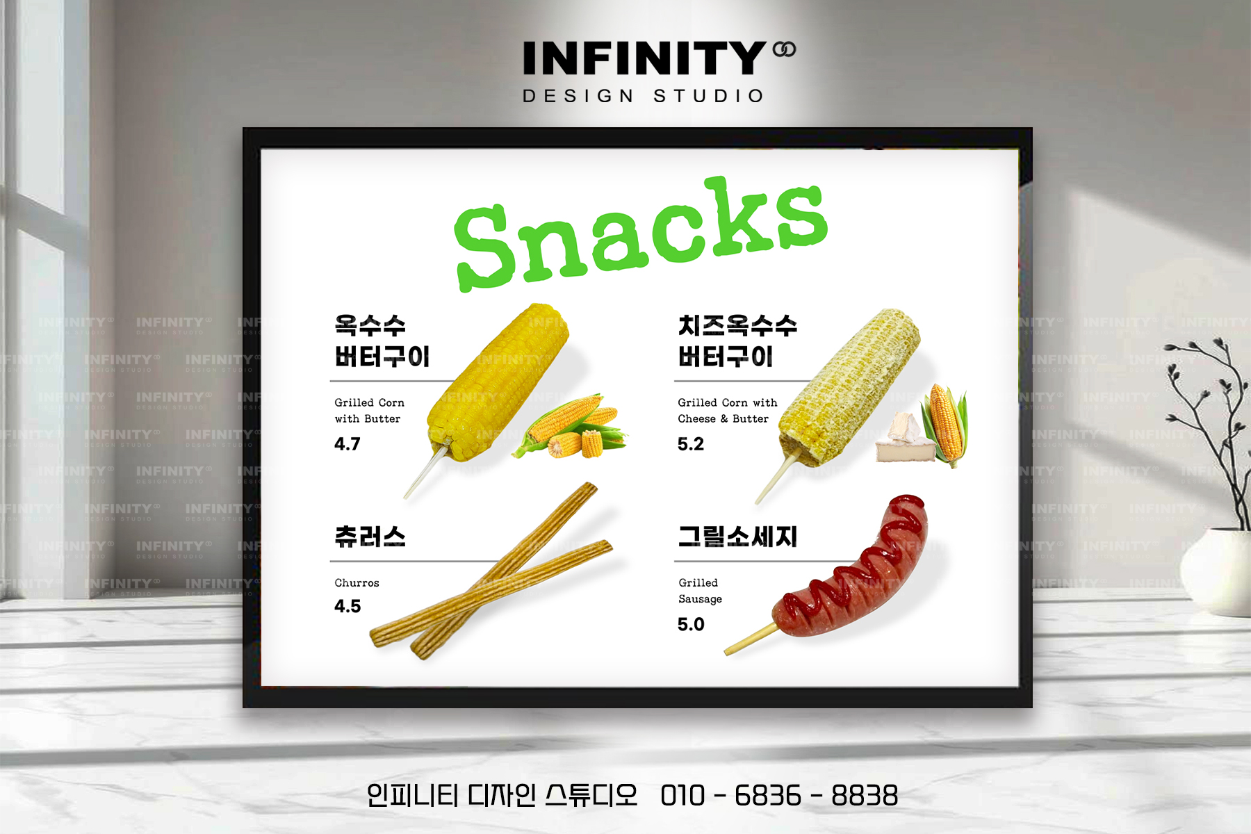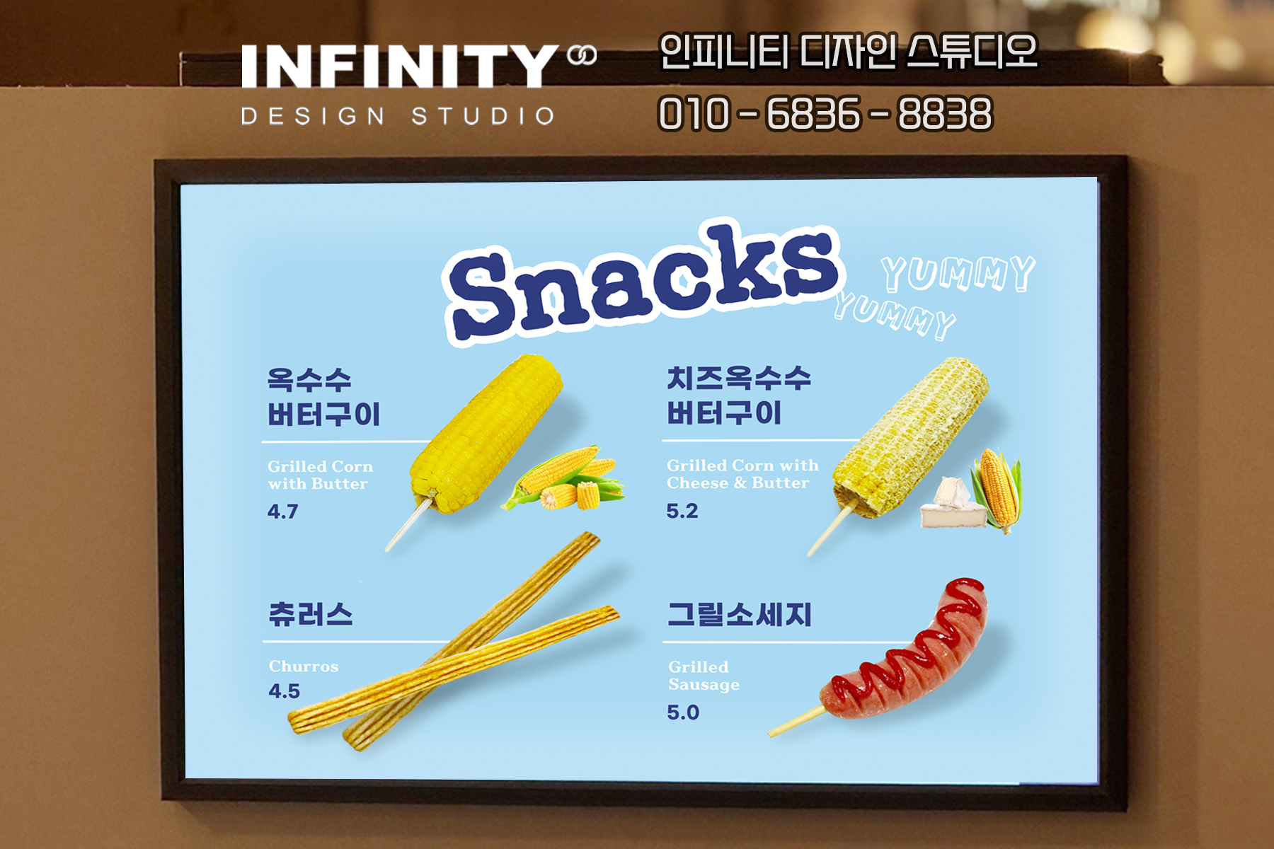 스낵 사진을 담아 메뉴판 용도로