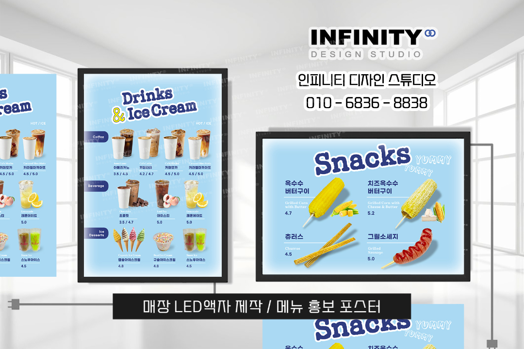 안녕하세요, 디자인, 제작 전문인피니티 디자인 스튜디오 입니다오늘은 음식점 메뉴 포스터 액자 제작소식 포스팅 드립니다 메뉴별 사진과 홍보문구를 담은 디자인으로캔버스 액자 제작으로