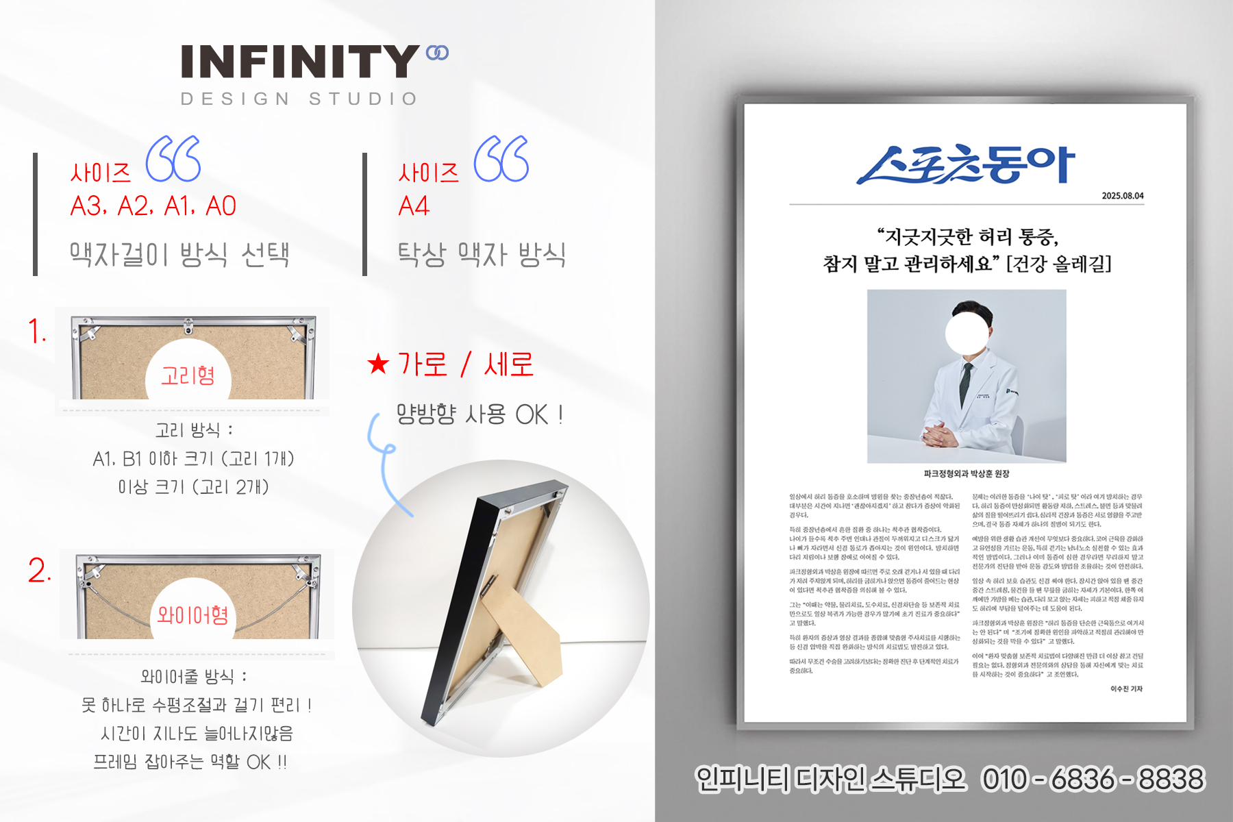 프로필 액자 제작, 한의원 원장 프로필 액자 디자인, 병원 액자 맞춤 제작