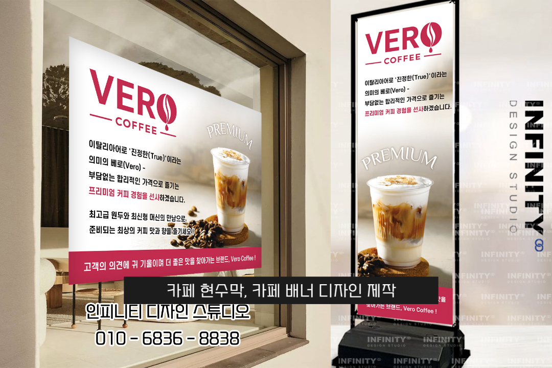 카페 입구 입간판 배너 제작, 메뉴판 배너 제작, 카페 메뉴사진 배너