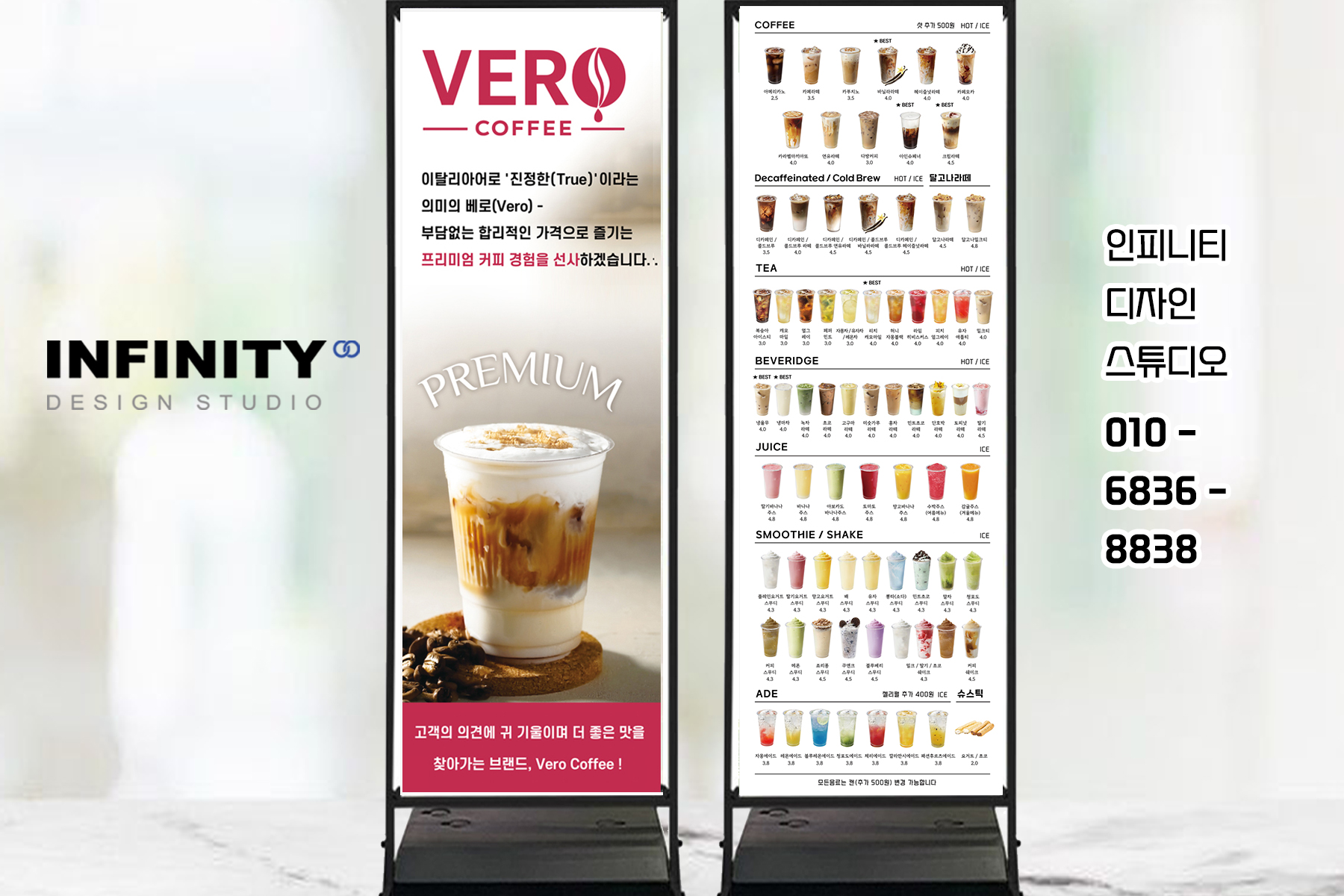 안녕하세요, 디자인, 제작 전문인피니티 디자인 스튜디오 입니다 :) 오늘은 카페 입구 입간판 배너메뉴판 배너 제작소식으로 포스팅 드립니다 바람이 잘통하는 매쉬배너로 진행의뢰해주신 신규
