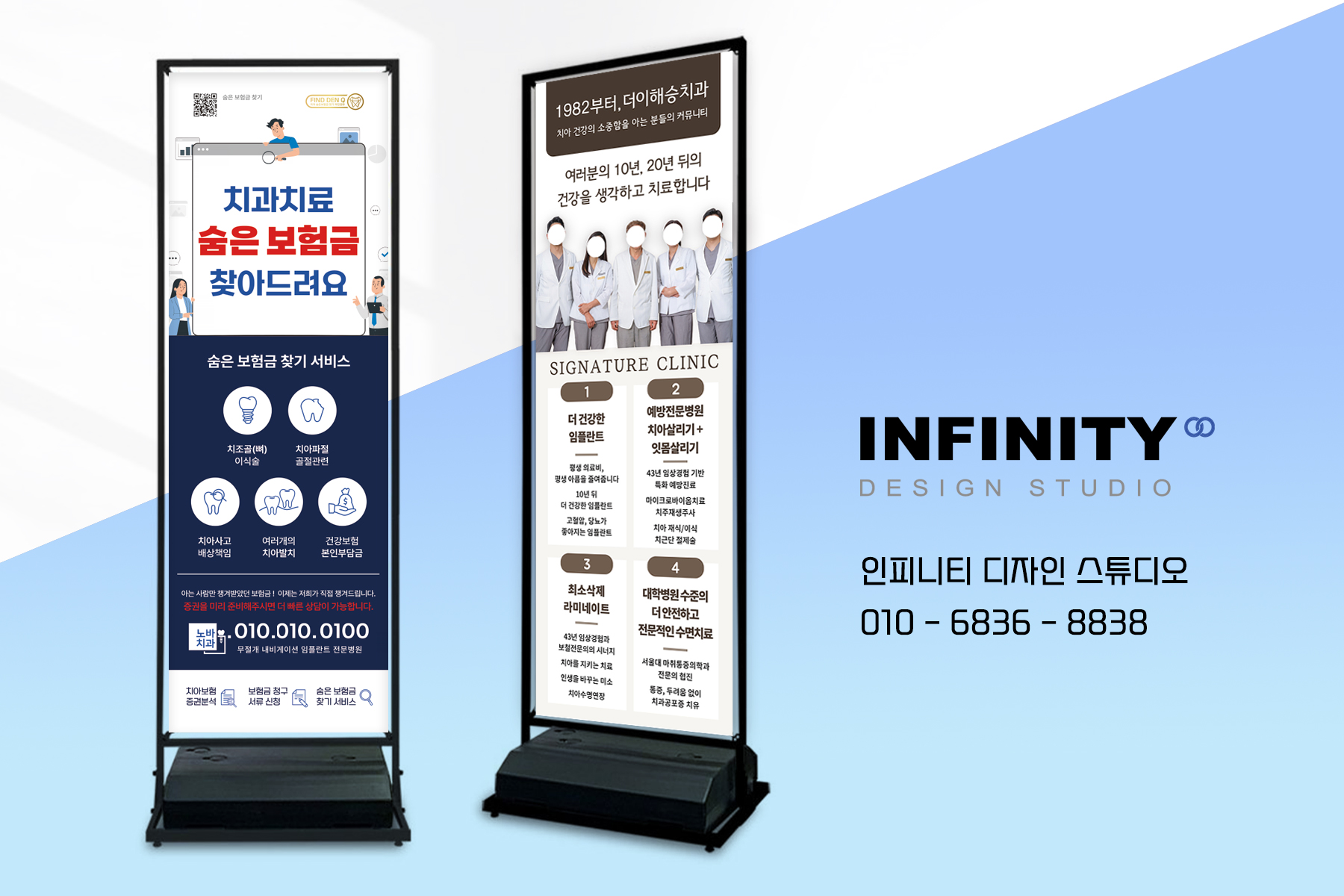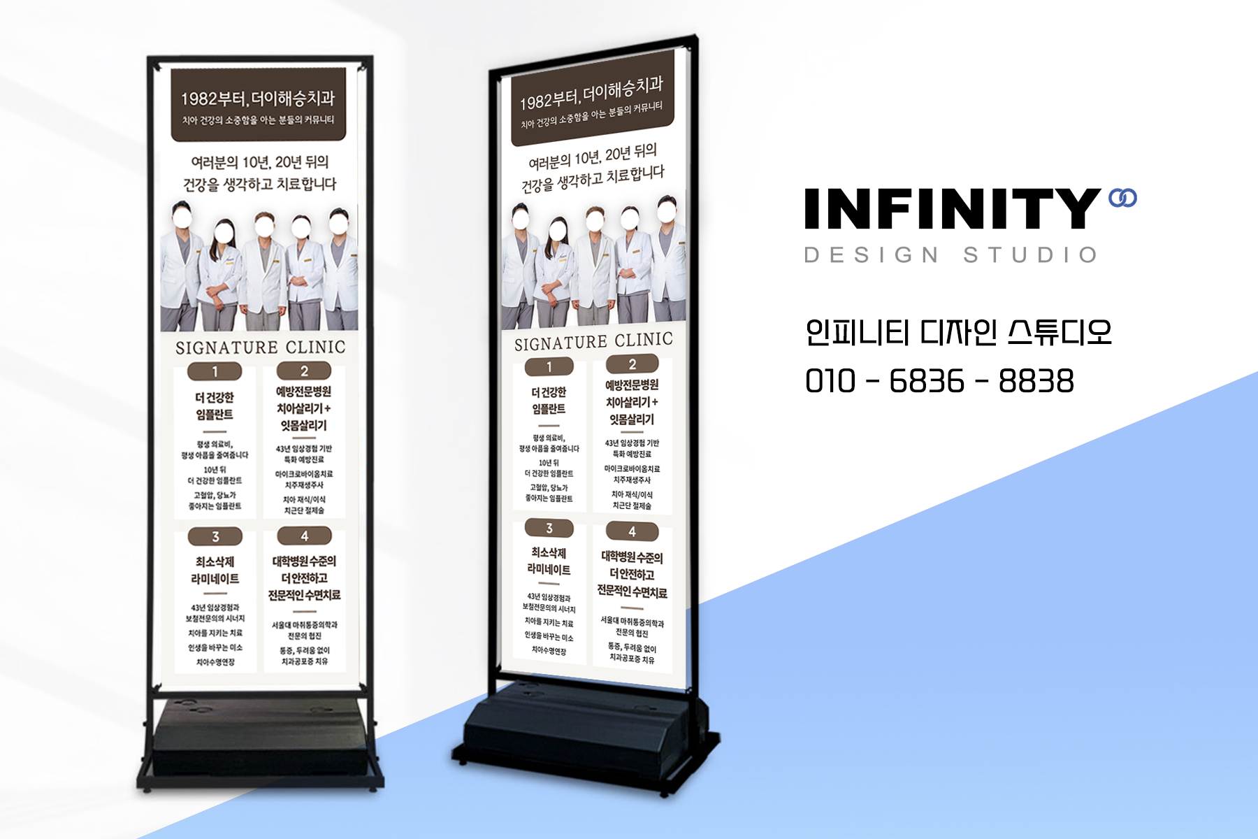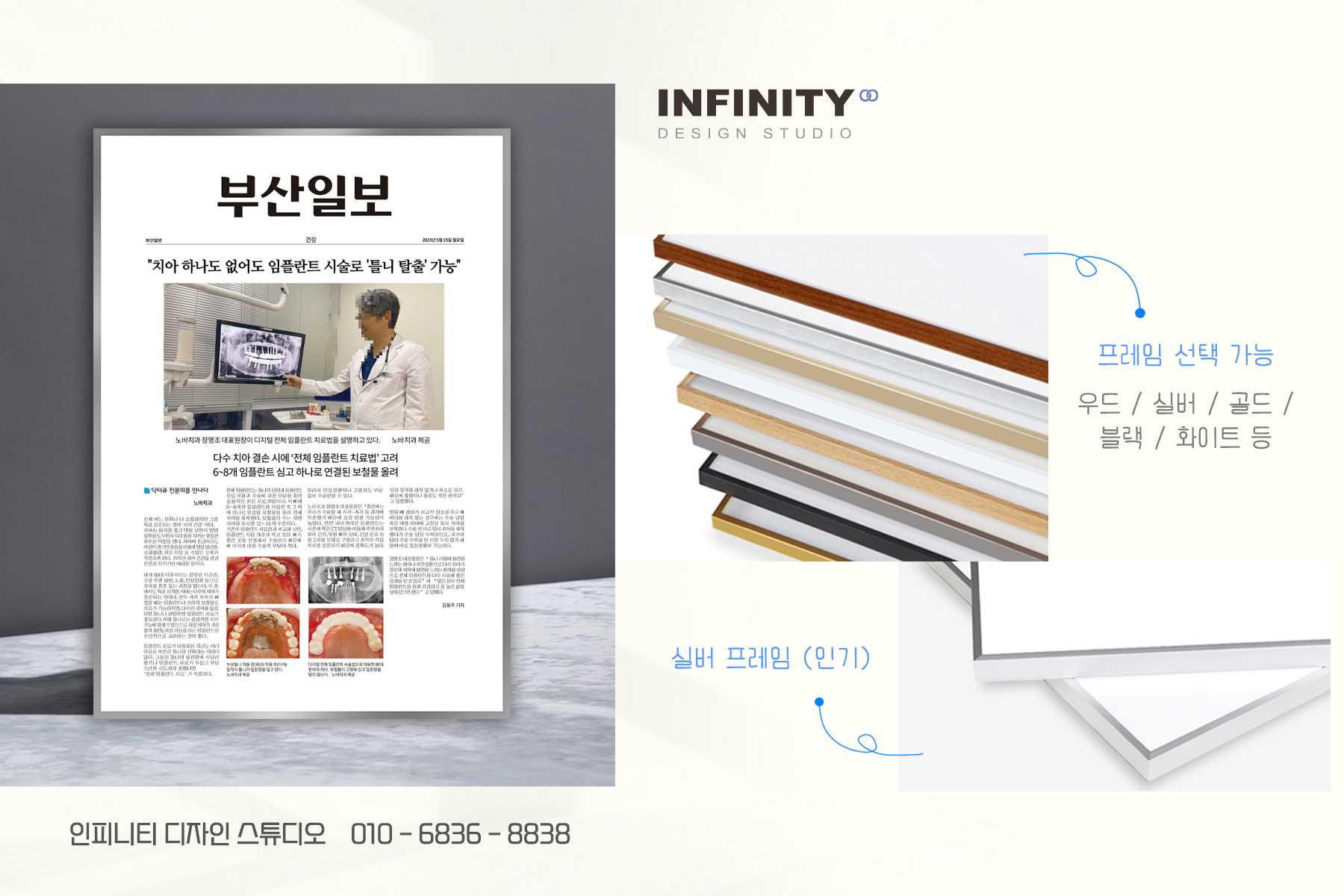 안녕하세요, 디자인, 제작 전문인피니티 디자인 스튜디오 입니다.오늘은 치과 액자 제작 소식 포스팅준비했습니다 :) [ 병원 홍보 액자 ] + [ 원장님 프로필 액자 ] 2가지 세트로 진