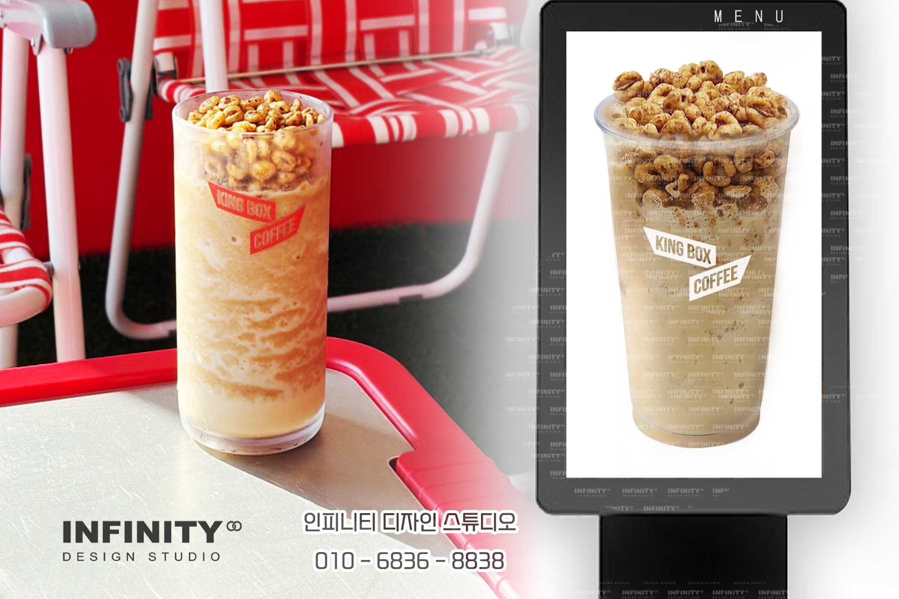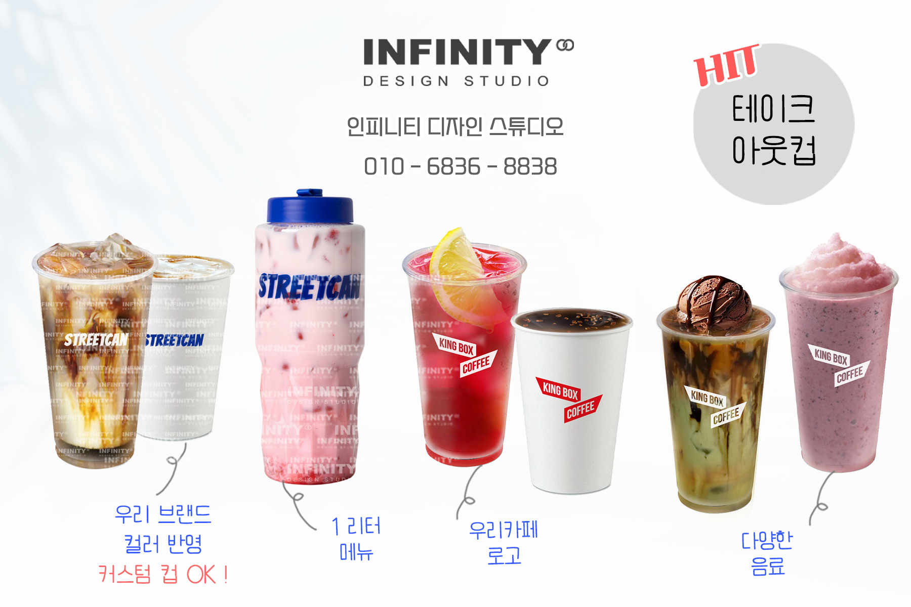 안녕하세요, 디자인, 제작 전문인피니티 디자인 스튜디오 입니다 :) 카페 시트지, 포스터, 배너 제작,카페 홍보물 디자인,카페 배너 메뉴판 디자인 카페오픈을 준비하며 의뢰해주신카페 홍보 시
