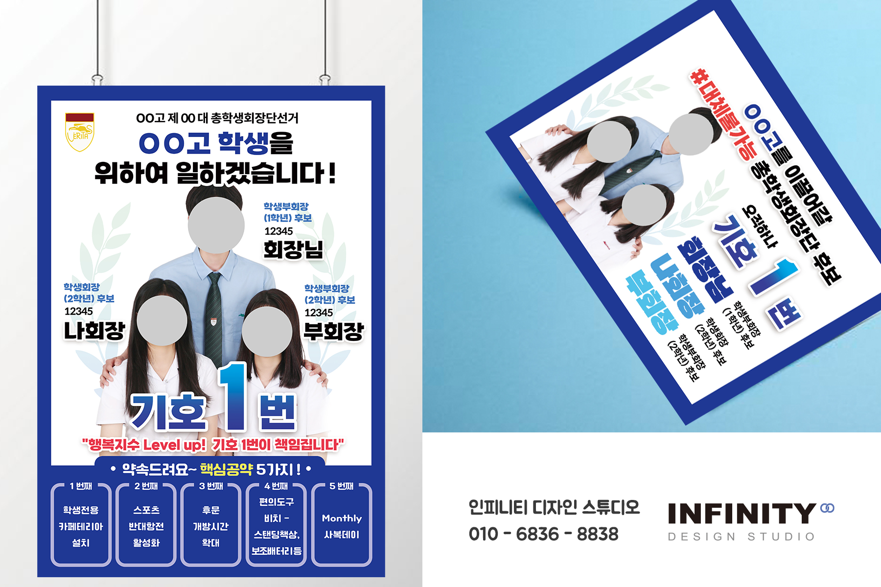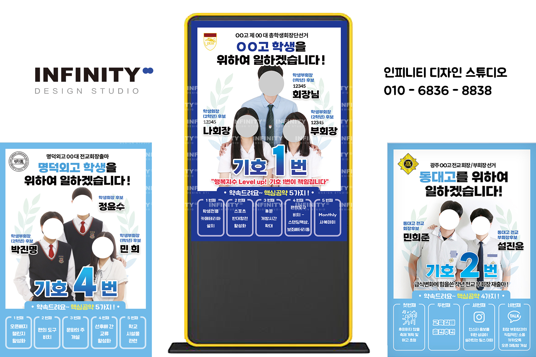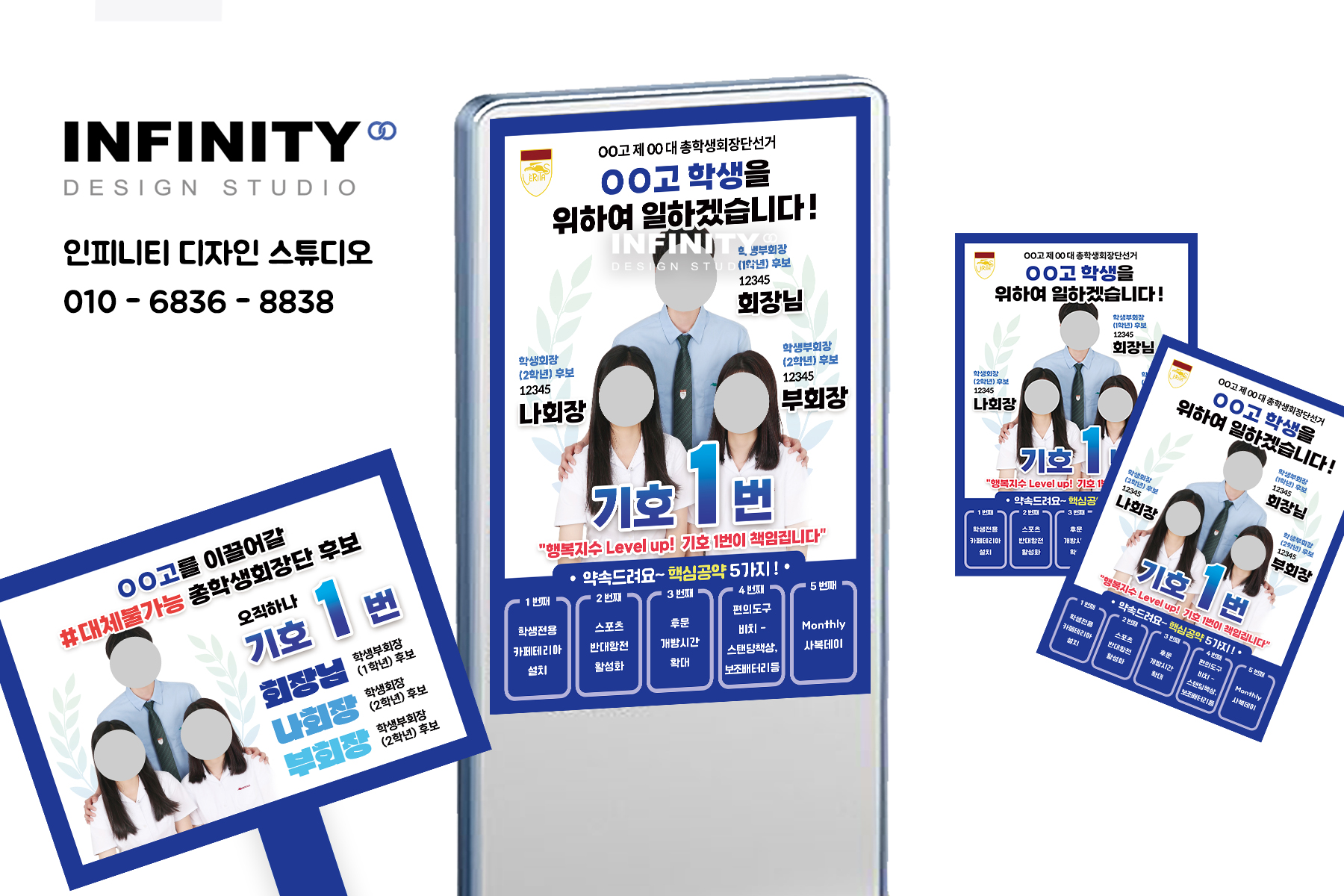 안녕하세요, 디자인, 제작 전문인피니티 디자인 스튜디오 입니다.오늘은 전교회장 부회장 선거포스터,선거피켓 추천 포스팅 드립니다 :) 깔끔한 디자인과 함께 인쇄, 제작도한번에 진행해드