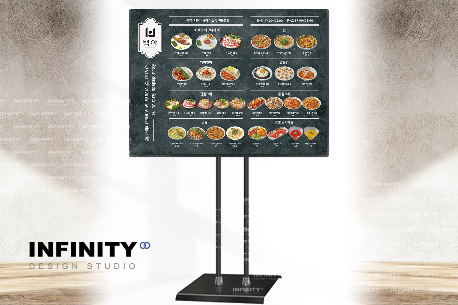 안녕하세요, 디자인, 제작 전문인피니티 디자인 스튜디오 입니다오늘은 음식점 메뉴 포스터 액자 제작소식 포스팅 드립니다 메뉴별 사진과 홍보문구를 담은 디자인으로캔버스 액자 제작으로