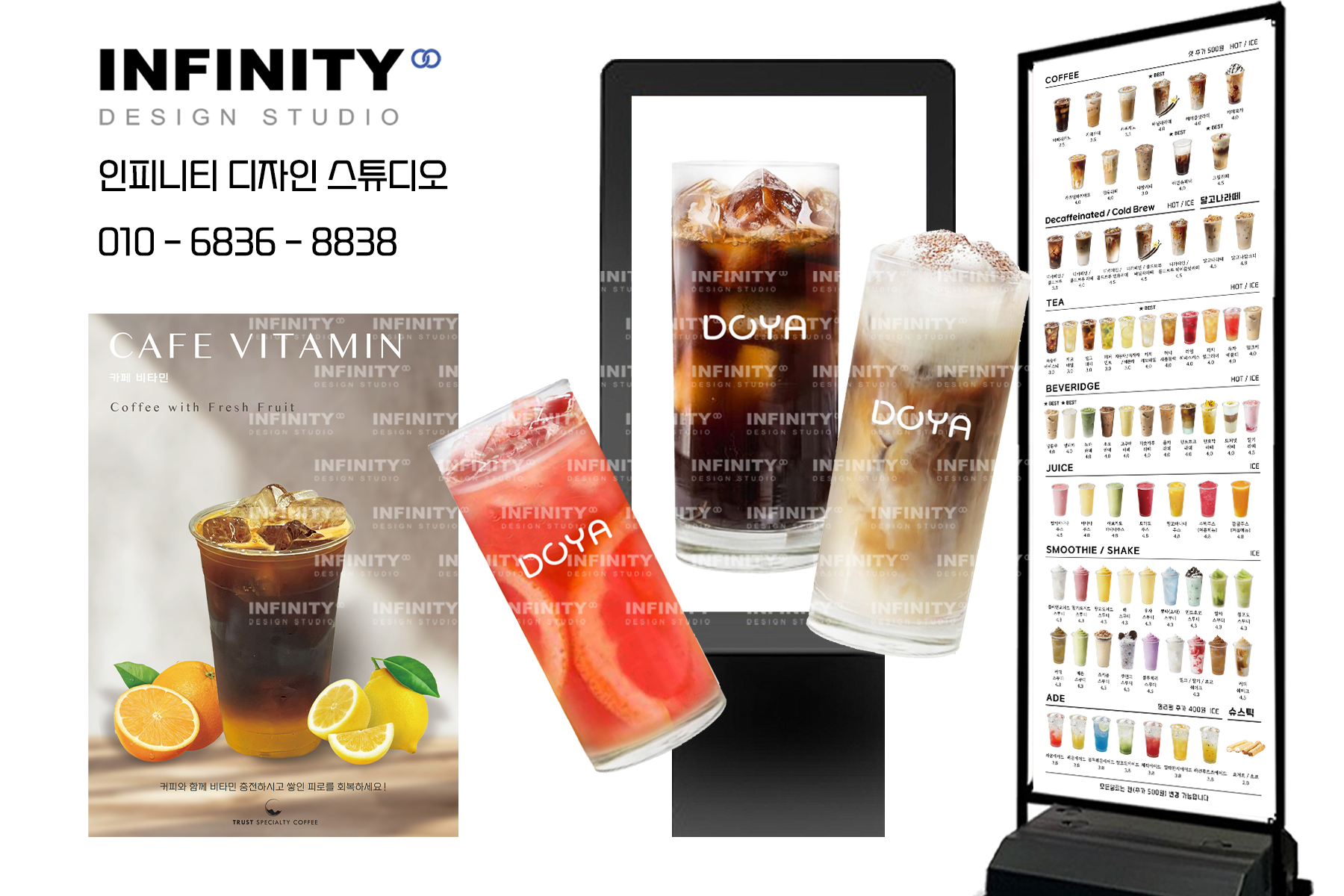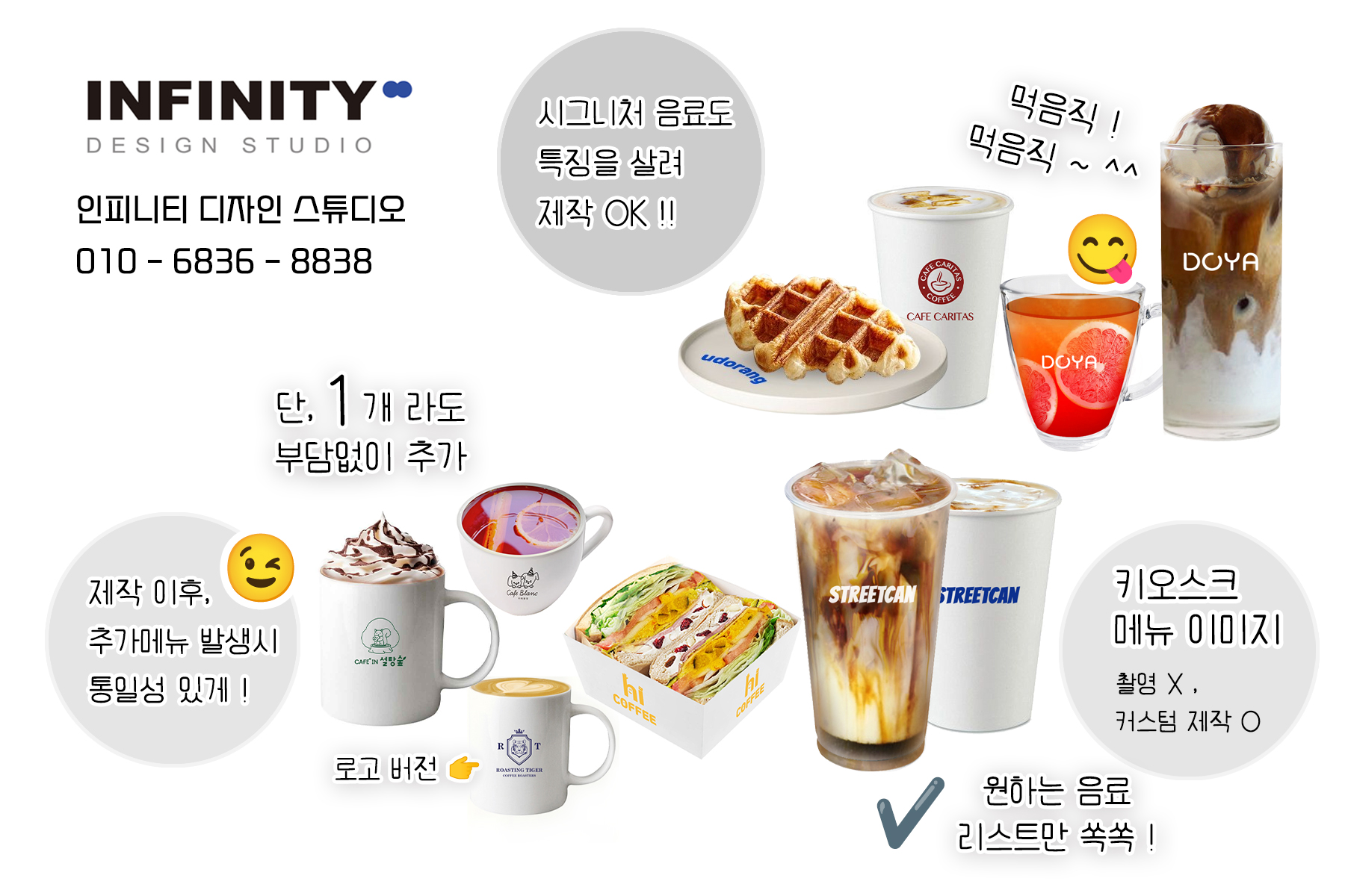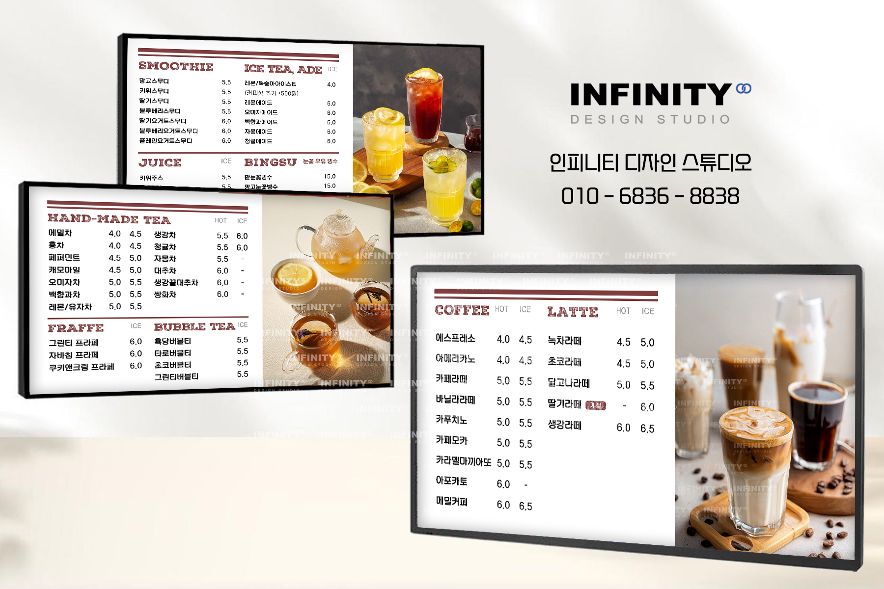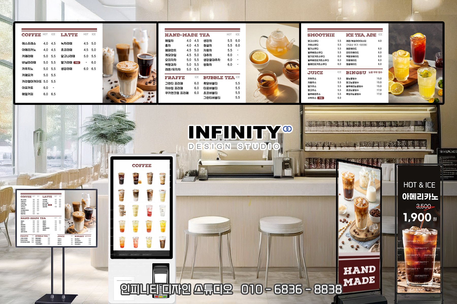안녕하세요, 디자인, 제작 전문인피니티 디자인 스튜디오 입니다 :) 오늘은 카페에서 많이 사용하는키오스크, 전자메뉴판 메뉴사진세트 제작소식포스팅 준비했어요 우리카페 메뉴리스트에 맞
