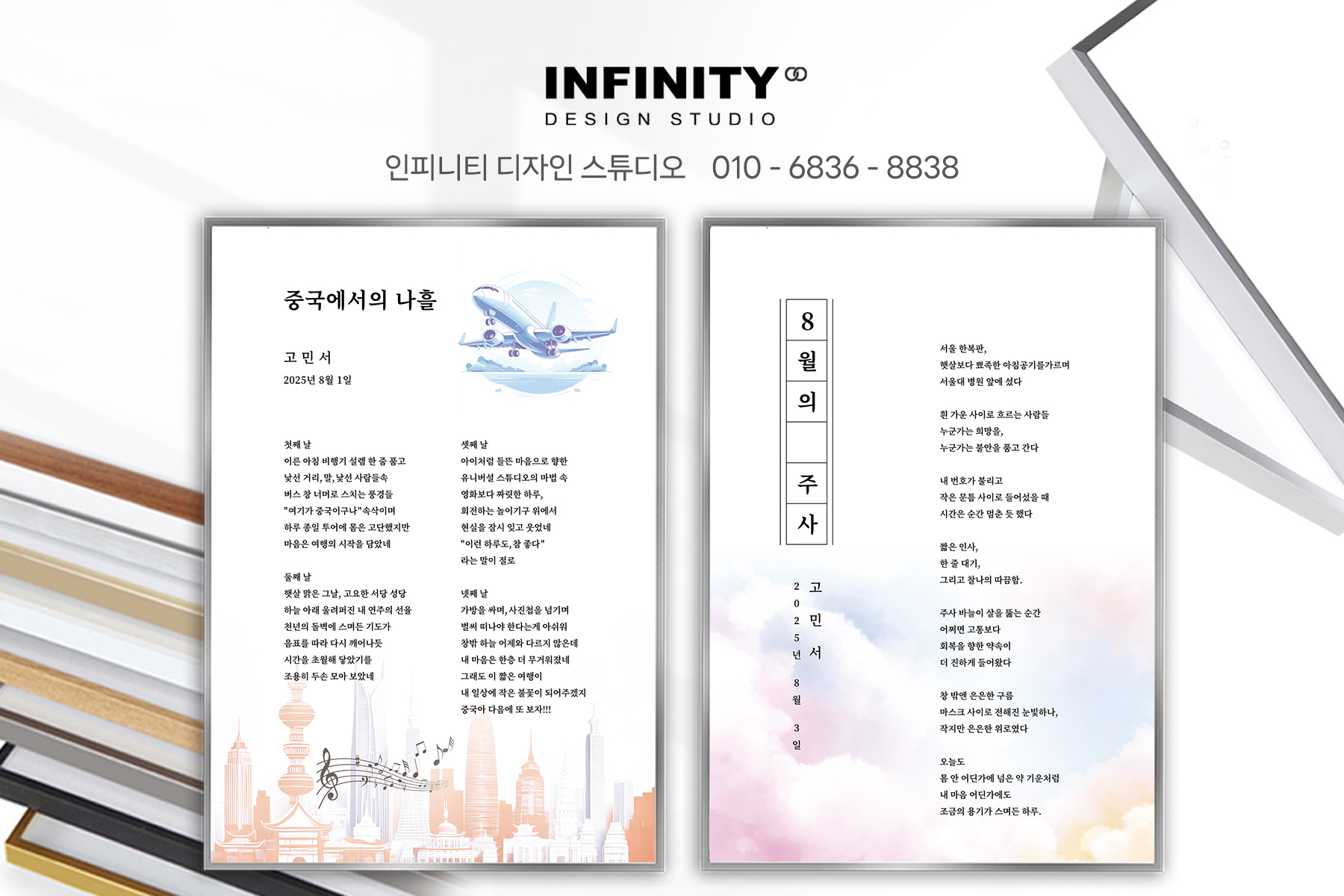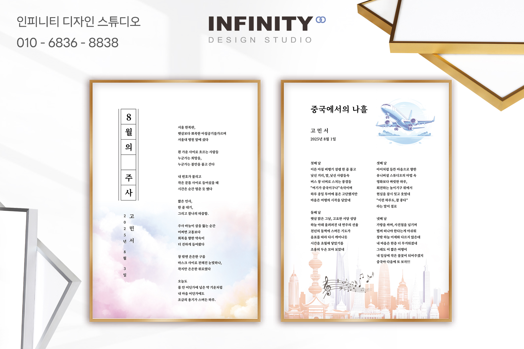 안녕하세요, 디자인, 제작 전문인피니티 디자인 스튜디오 입니다 :) 시 액자 제작,시문학 작품 디자인 액자 제작,사무실 액자 제작 소식 포스팅 드립니다 :) 시에 어울리는 디자인으로 맞춤 진행