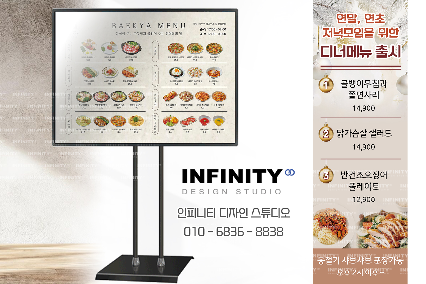 안녕하세요, 디자인, 제작 전문인피니티 디자인 스튜디오 입니다오늘은 음식점 메뉴 포스터 액자 제작소식 포스팅 드립니다 메뉴별 사진과 홍보문구를 담은 디자인으로캔버스 액자 제작으로